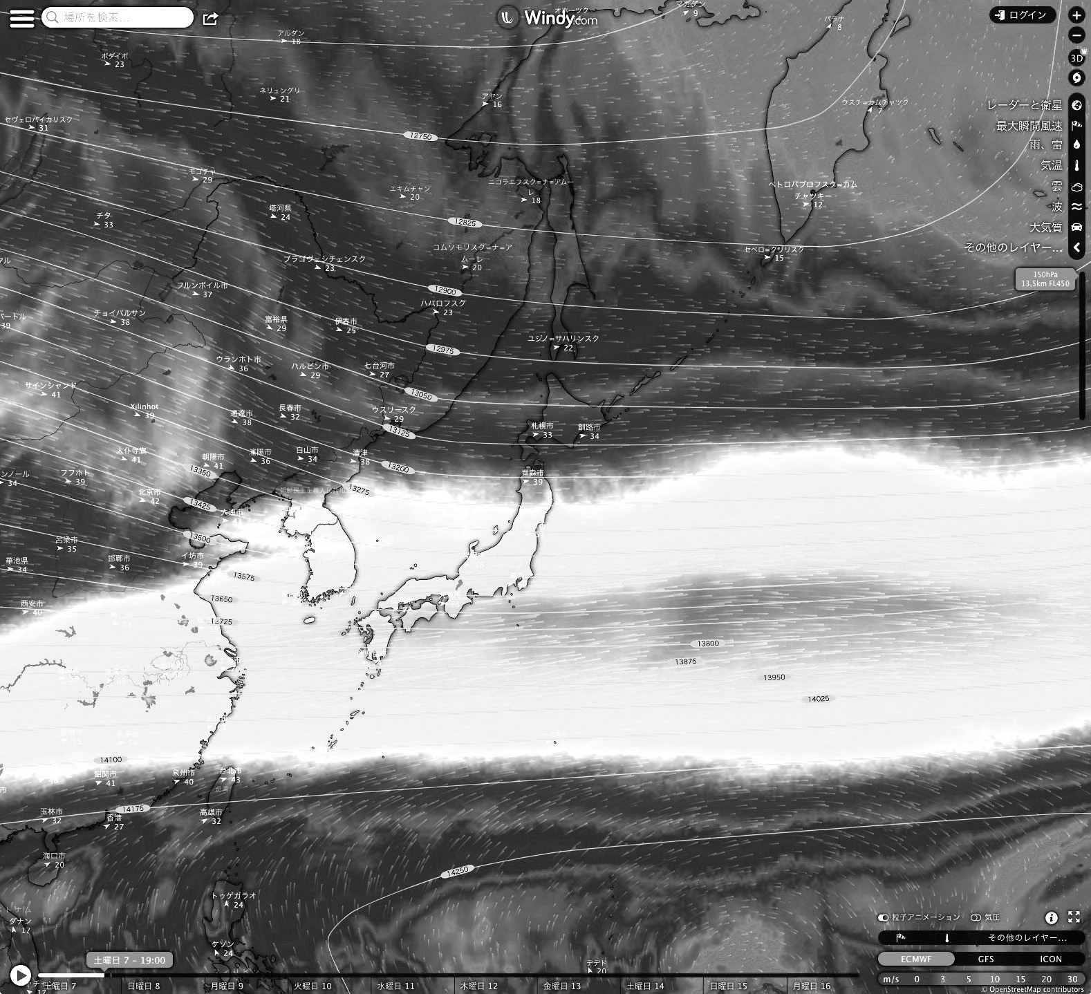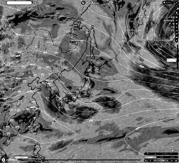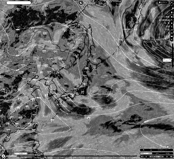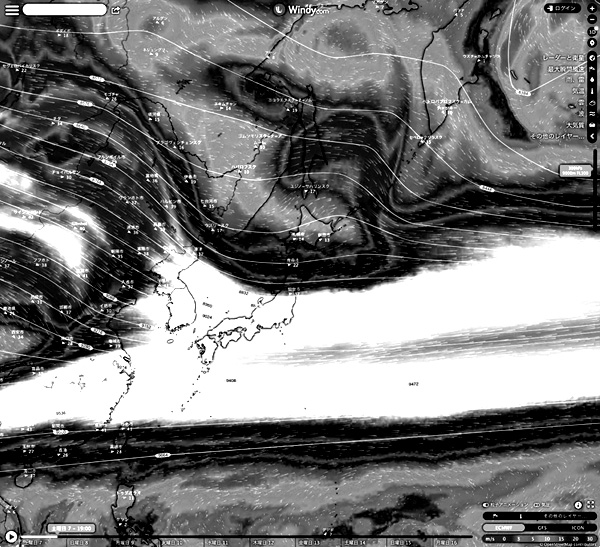 Windy.com の 2023-01-07 19:00 天気図を引用。