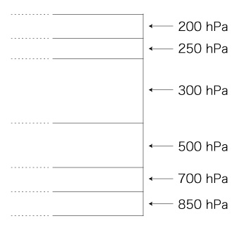 1. 気象庁の高層天気図サイトから,同一時刻の高層天気図をダウンロードする。