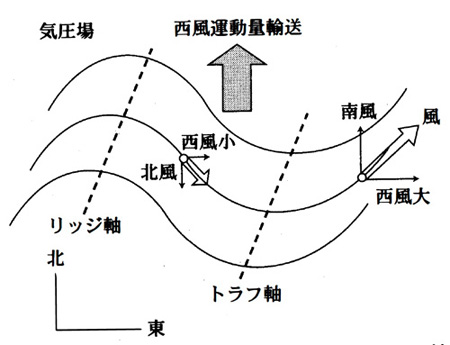 つまり、大気中で西風運動量を低緯度から中高緯度に絶えず輸送していなければならない。