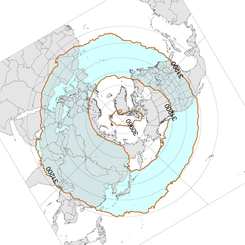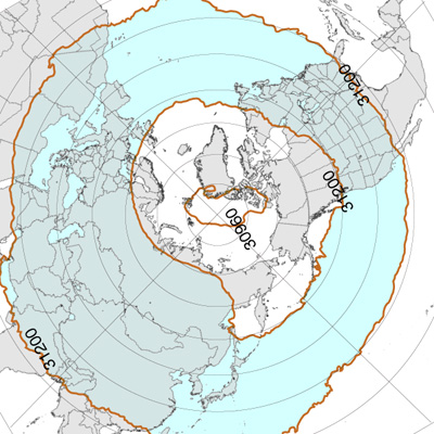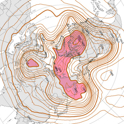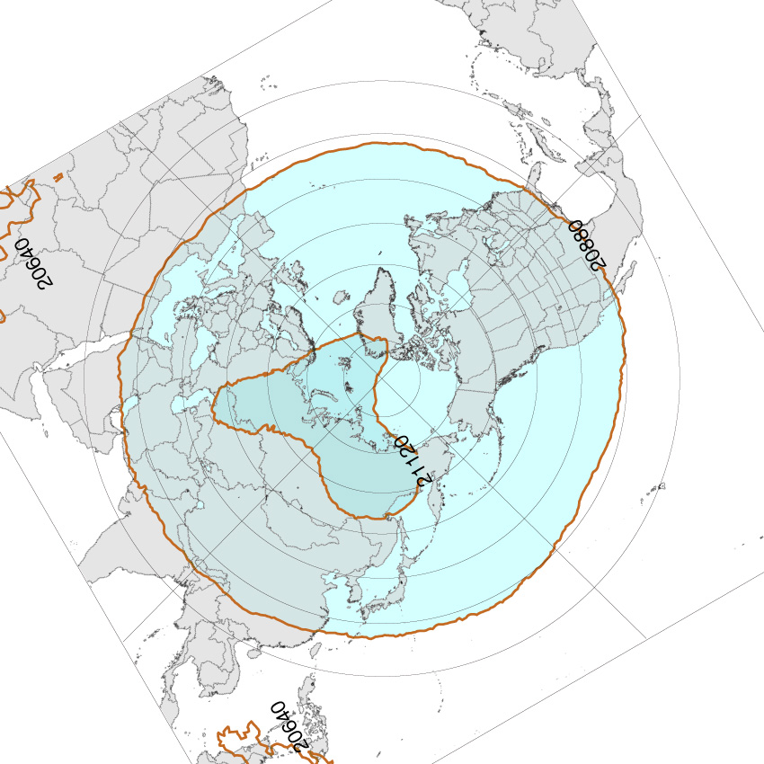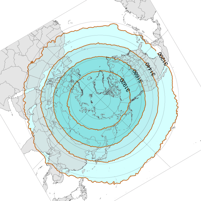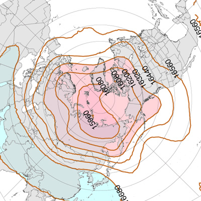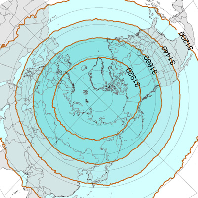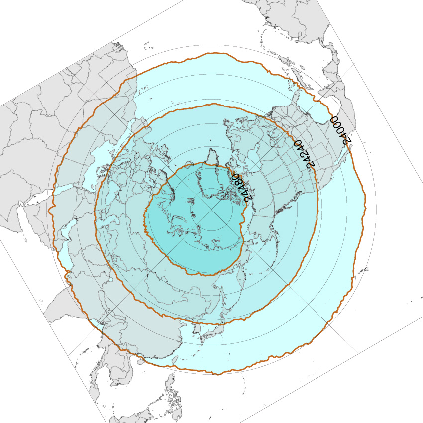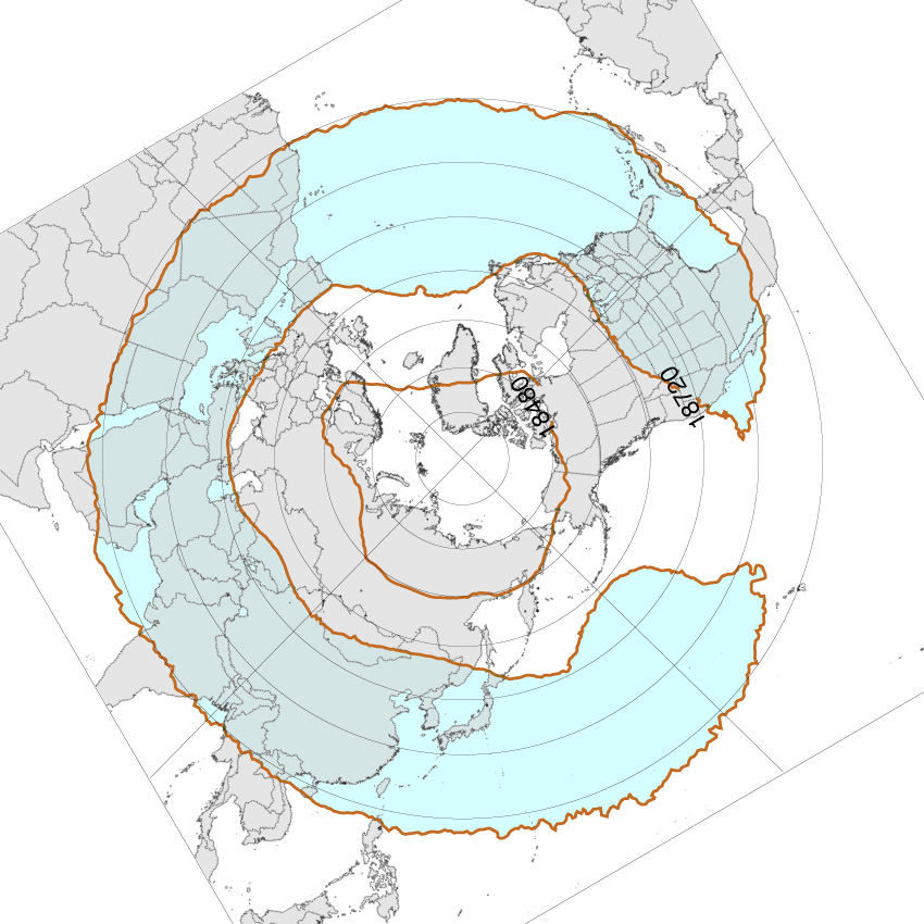 北半球高緯度圏鉛直対流の冬春夏秋