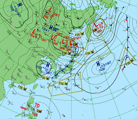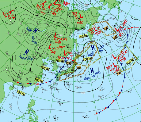 天気図は,左から,