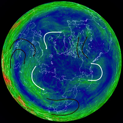 earth.nullschool.net の天気図 (風速) を編集。