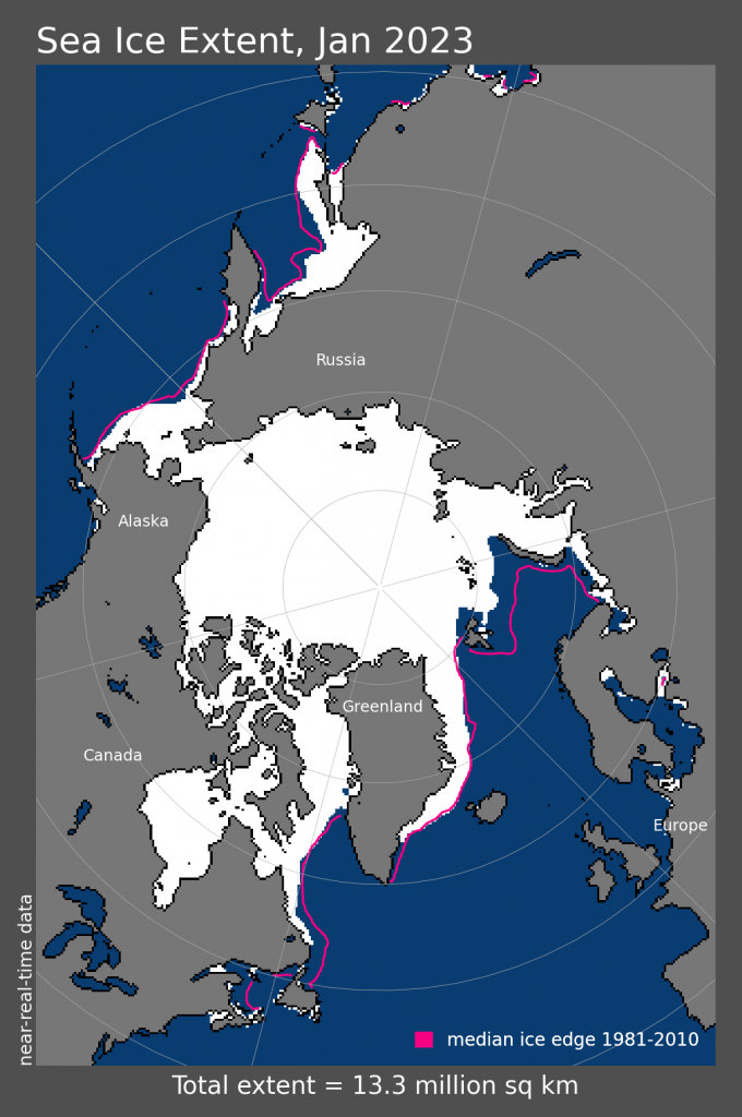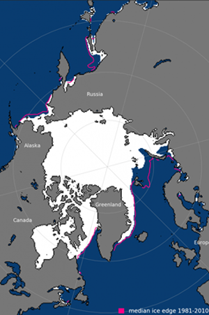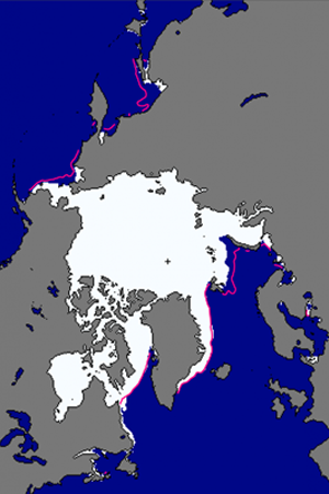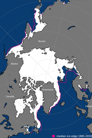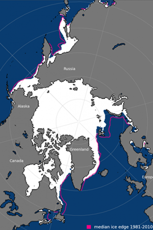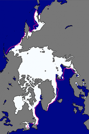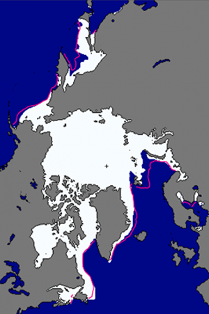 北極海域でこれに相当するところは,氷域が海域と接するところである。