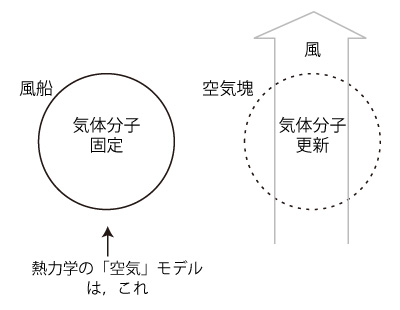 「空気塊」には,気体分子入れ替わりの風が通っている。