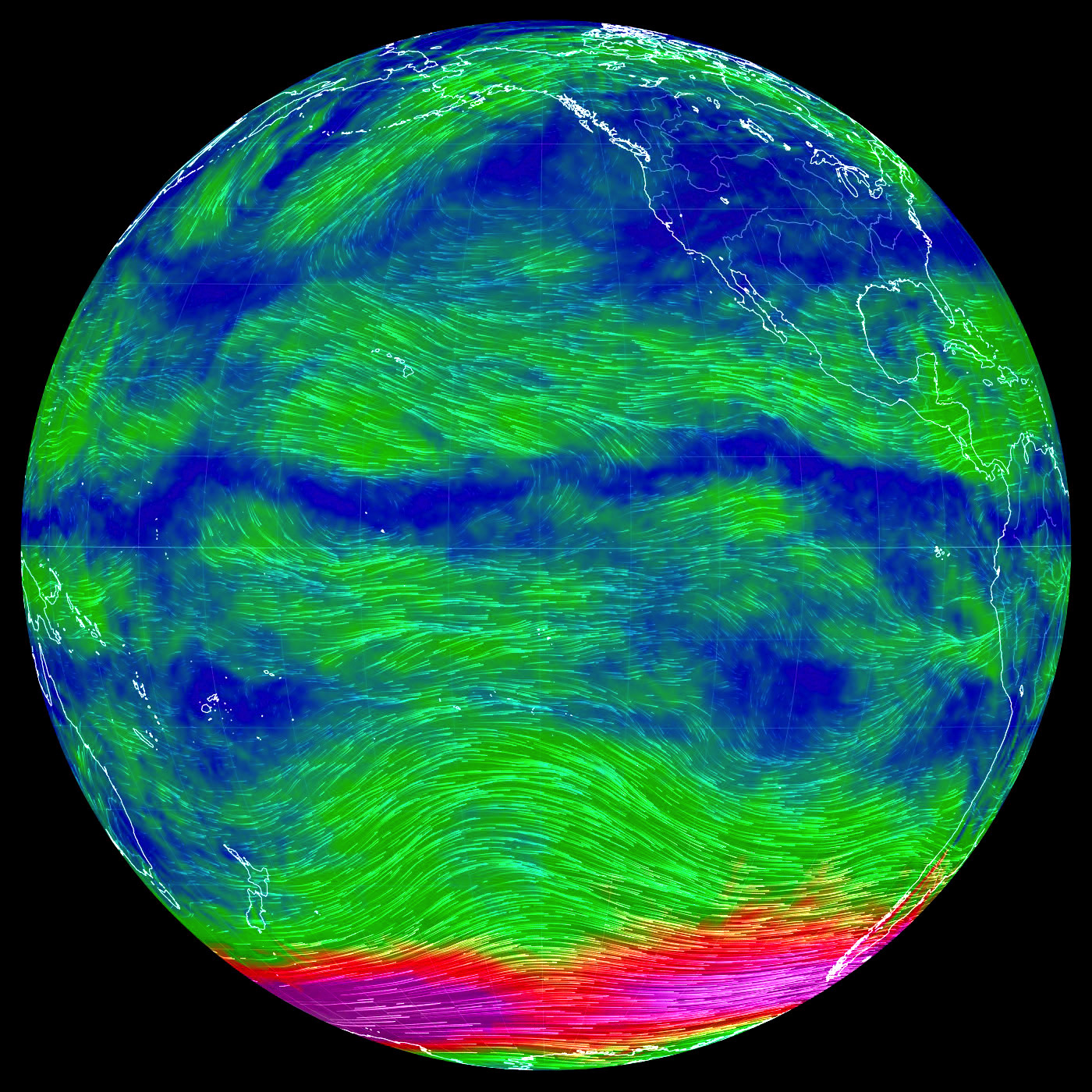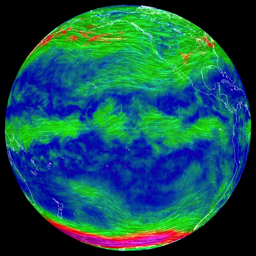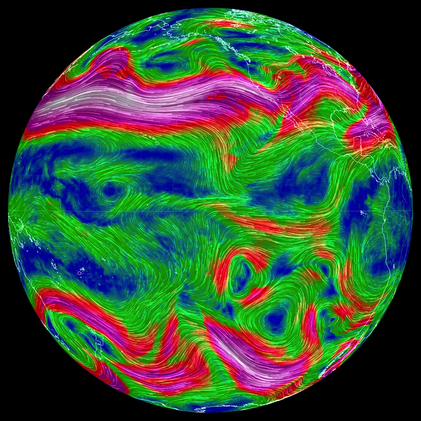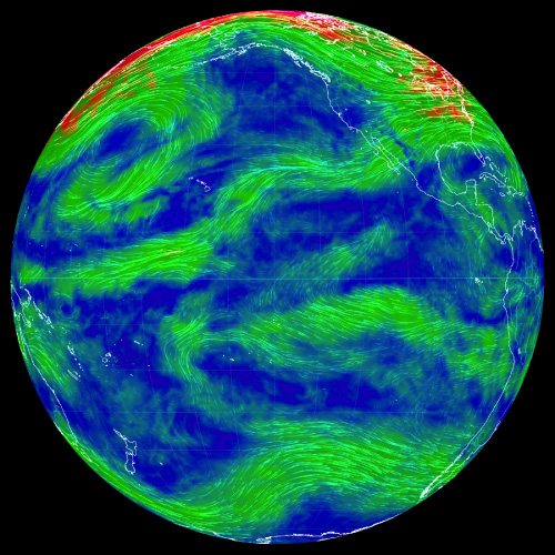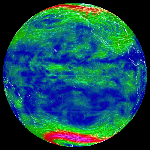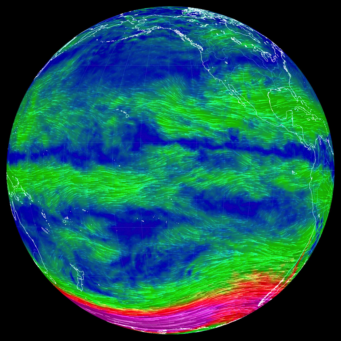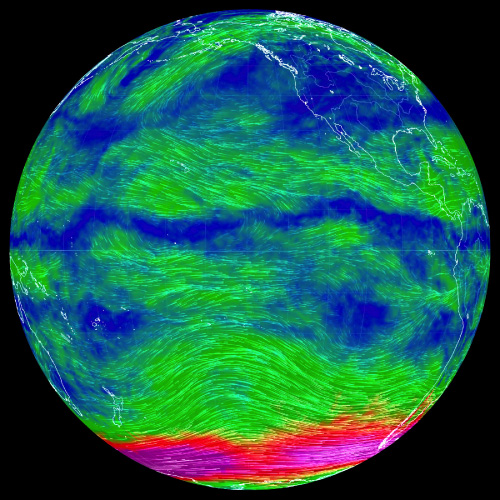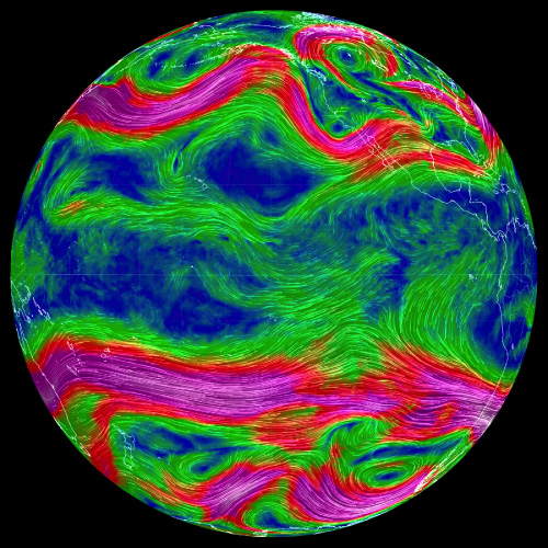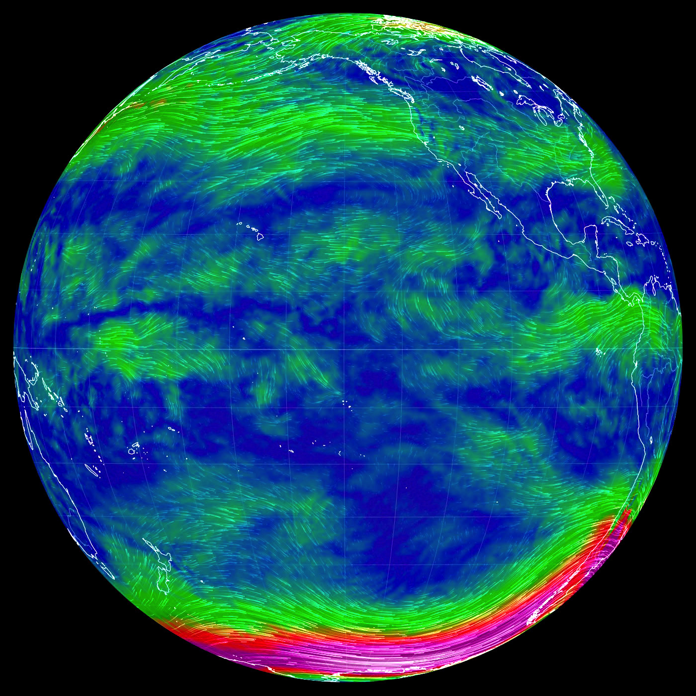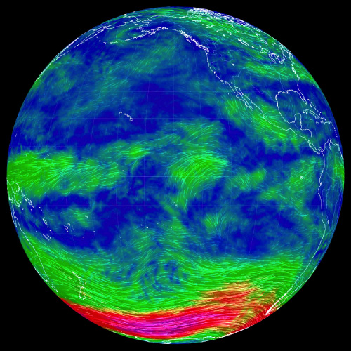 「赤道付近で上昇し緯度20–30度の低緯度地域で下降する気流」は,存在しない。 存在しないことは,実際に天気図にあたればわかる。 「熱帯収束帯」は,いまのような天気図をもてない時代の,机上の論 (妄想) である。 しかし気象学は,「熱帯収束帯」を固持し続けている。 それは,学者というのはだいたいが教条主義だからである。 天気図を見ず,教条のポンチ絵を信奉する。。 以下に,太平洋の 250hPa 面 (高度約11km) と 70hPa 面 (高度約 18.5km) の天気図を示す。 見ての通り,「赤道付近で上昇し緯度20–30度の低緯度地域で下降する気流」はもちろん,「定常的」と言えるような気流は存在しない。 |
