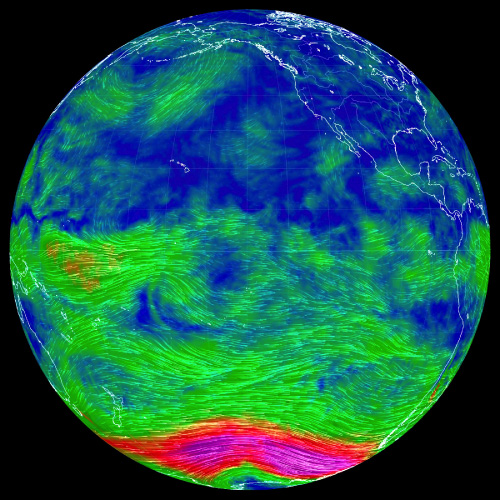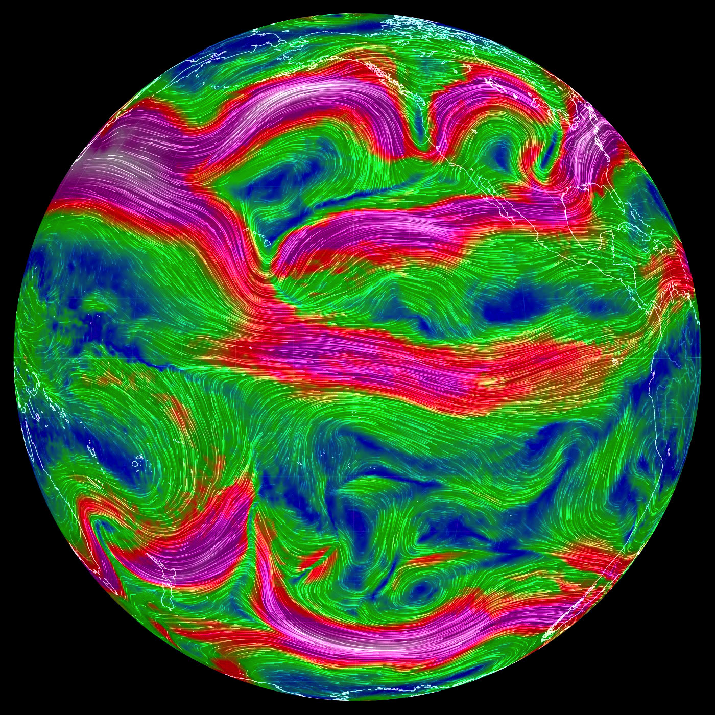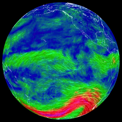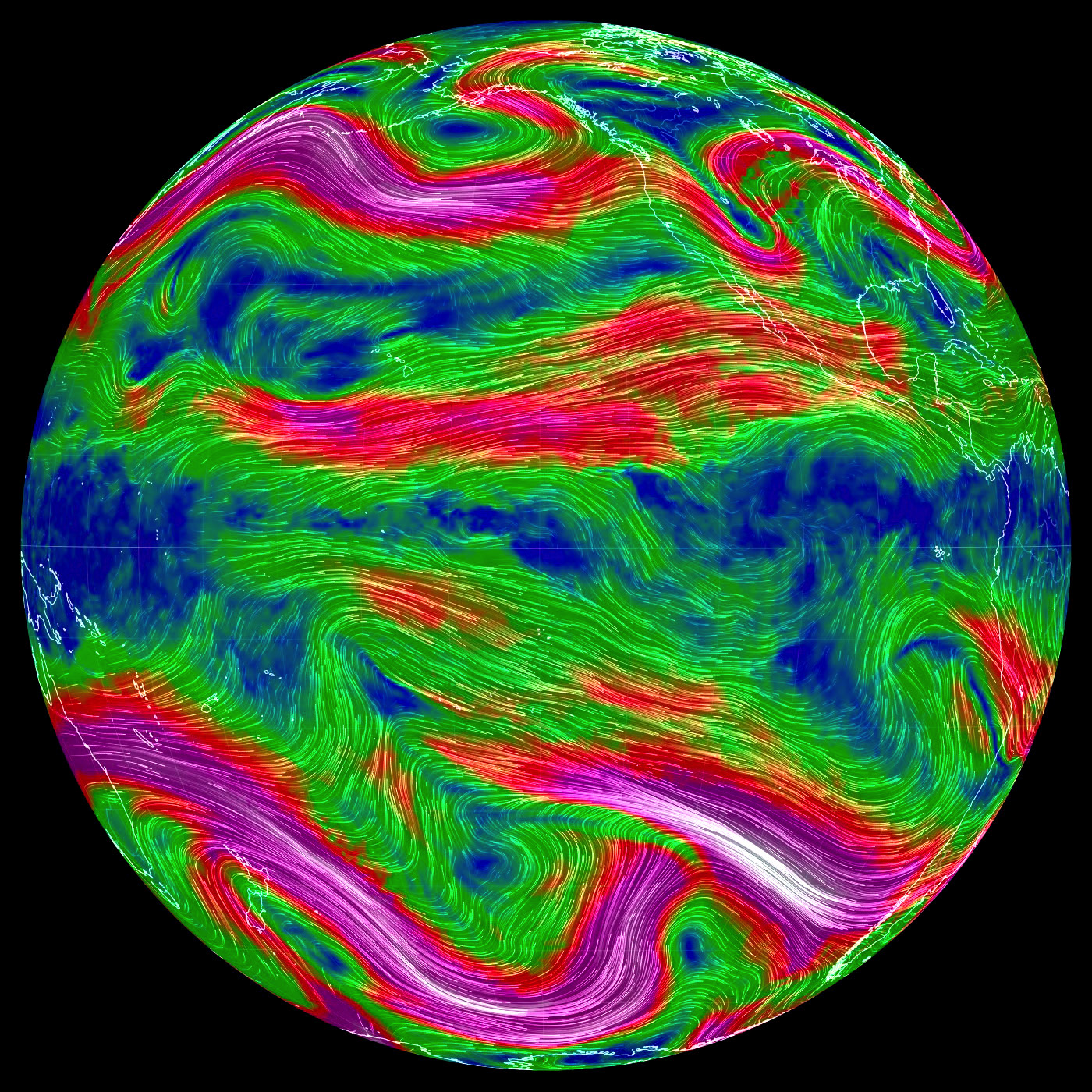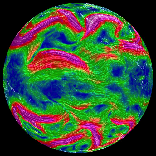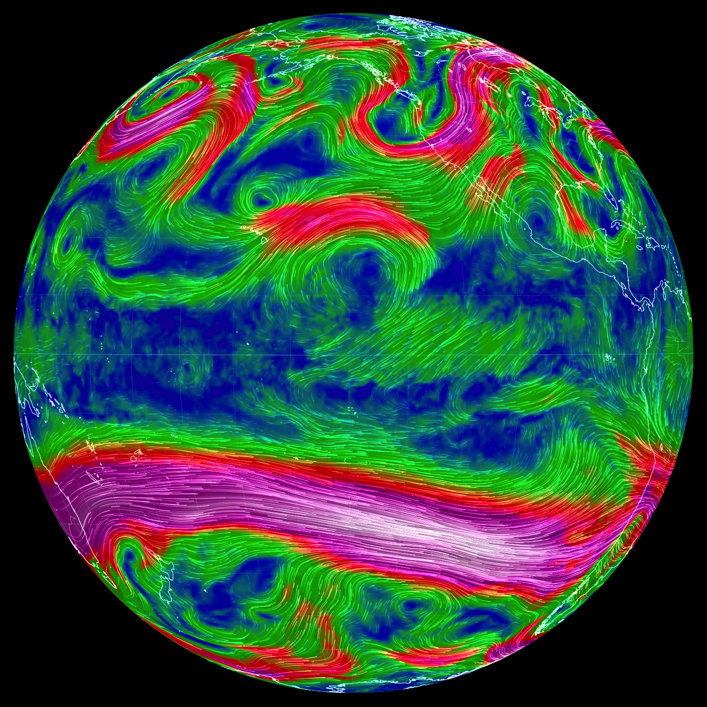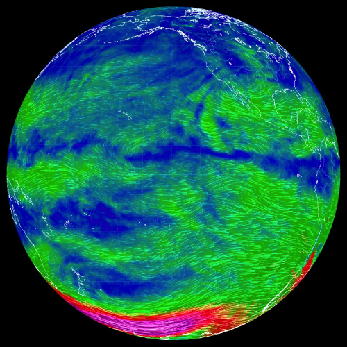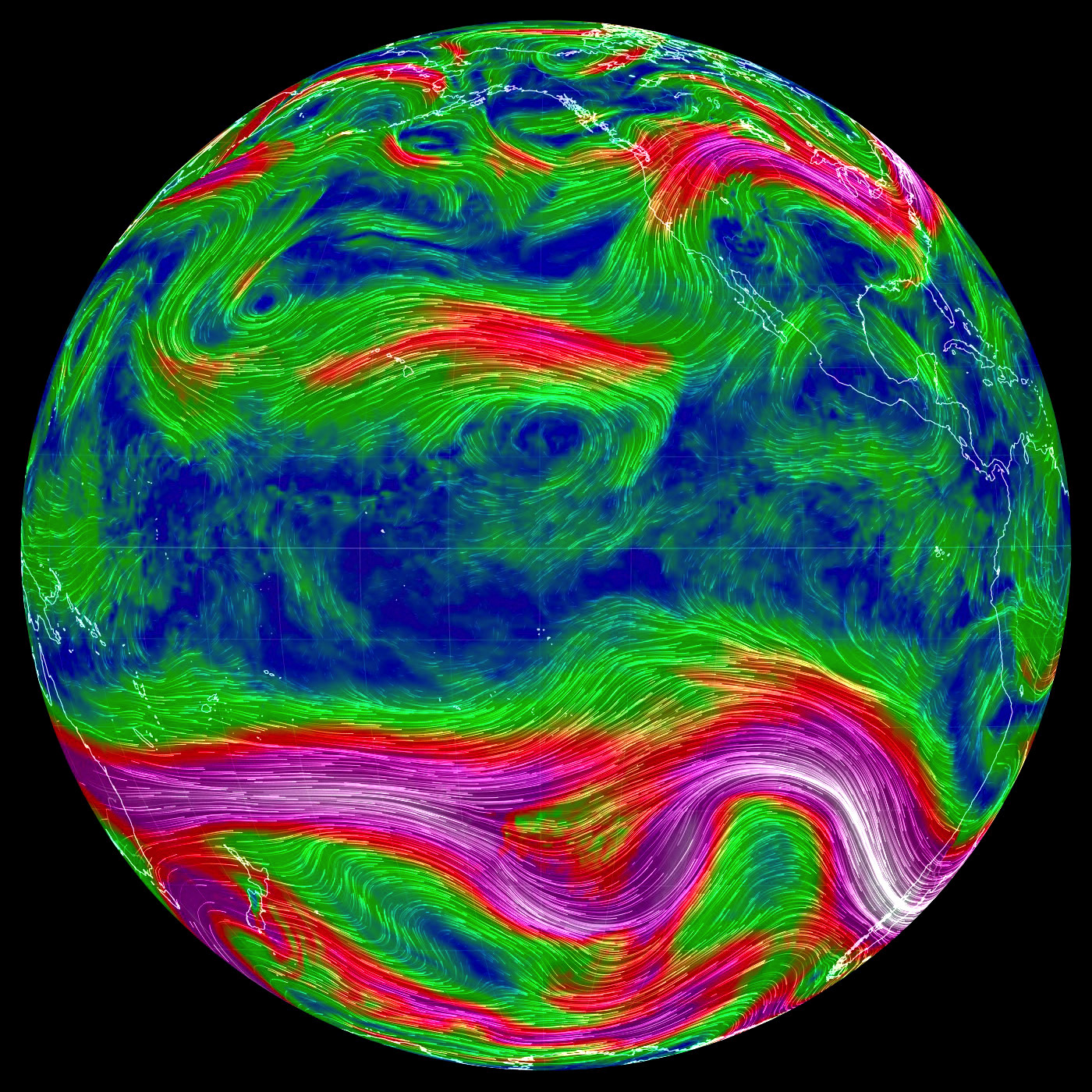 「赤道付近で上昇し緯度20–30度の低緯度地域で下降する気流」は,存在しない。 存在しないことは,実際に天気図にあたればわかる。 「熱帯収束帯」は,いまのような天気図をもてない時代の,机上の論 (妄想) である。 しかし気象学は,「熱帯収束帯」を固持し続けている。 それは,学者というのはだいたいが教条主義だからである。 天気図を見ず,教条のポンチ絵を信奉する。。 以下に,太平洋の 250hPa 面 (高度約11km) と 70hPa 面 (高度約 18.5km) の天気図を示す。 見ての通り,「赤道付近で上昇し緯度20–30度の低緯度地域で下降する気流」はもちろん,「定常的」と言えるような気流は存在しない。 |