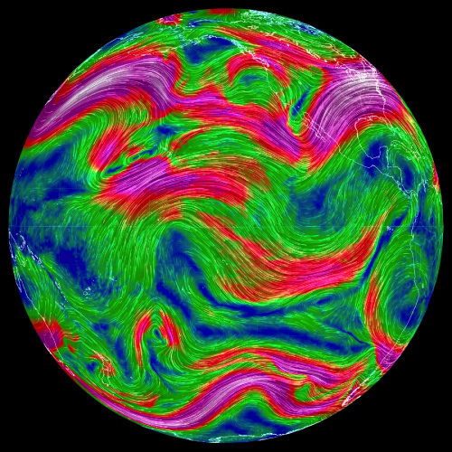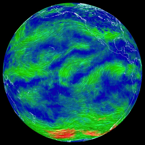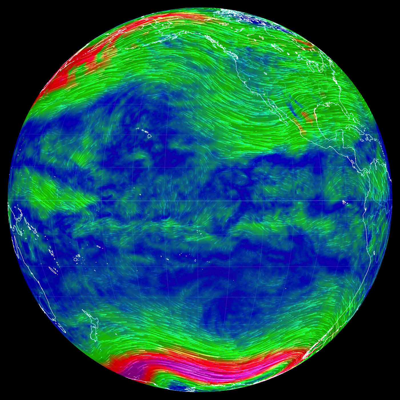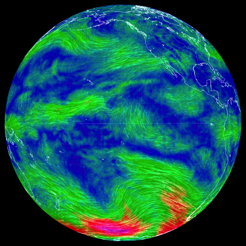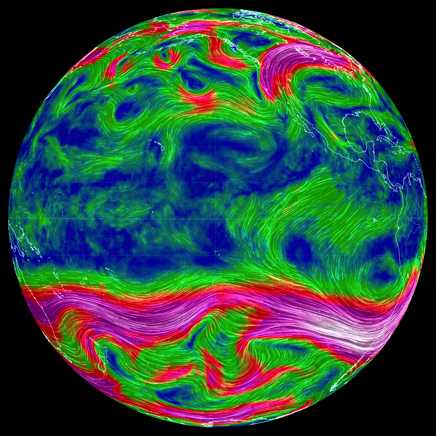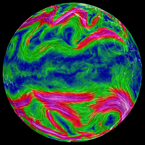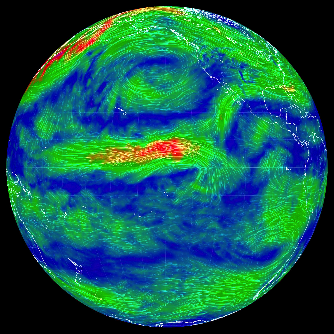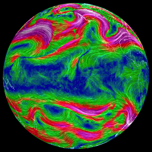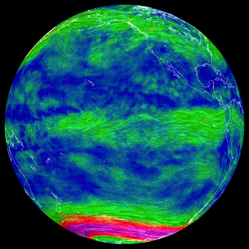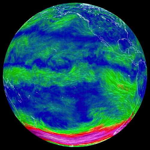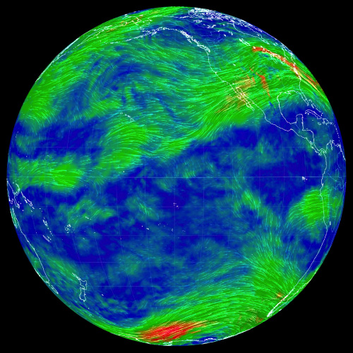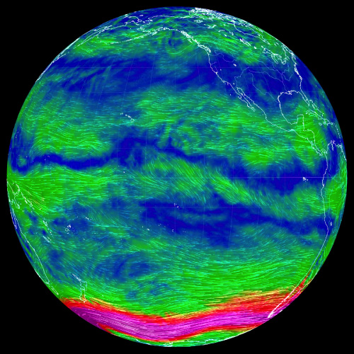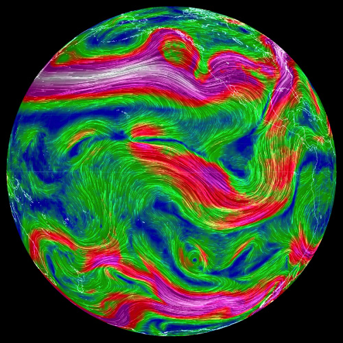 「赤道付近で上昇し緯度20–30度の低緯度地域で下降する気流」は,存在しない。 存在しないことは,実際に天気図にあたればわかる。 「熱帯収束帯」は,いまのような天気図をもてない時代の,机上の論 (妄想) である。 しかし気象学は,「熱帯収束帯」を固持し続けている。 それは,学者というのはだいたいが教条主義だからである。 天気図を見ず,教条のポンチ絵を信奉する。。 以下に,太平洋の 250hPa 面 (高度約11km) と 70hPa 面 (高度約 18.5km) の天気図を示す。 見ての通り,「赤道付近で上昇し緯度20–30度の低緯度地域で下降する気流」はもちろん,「定常的」と言えるような気流は存在しない。 |
