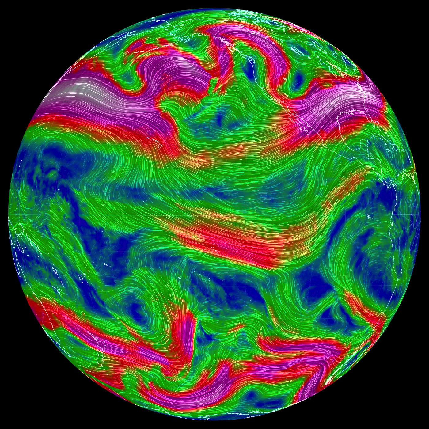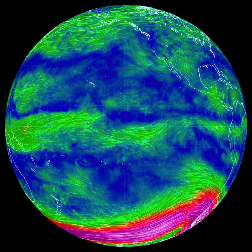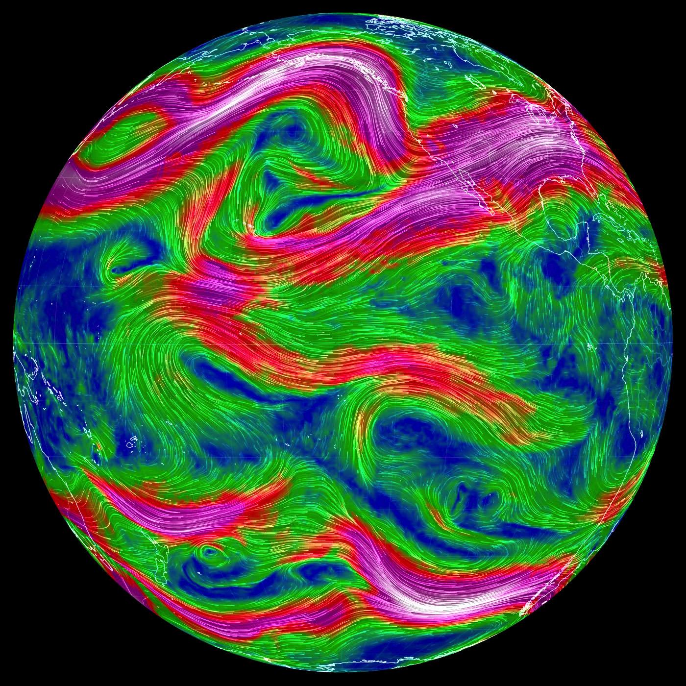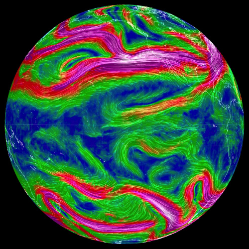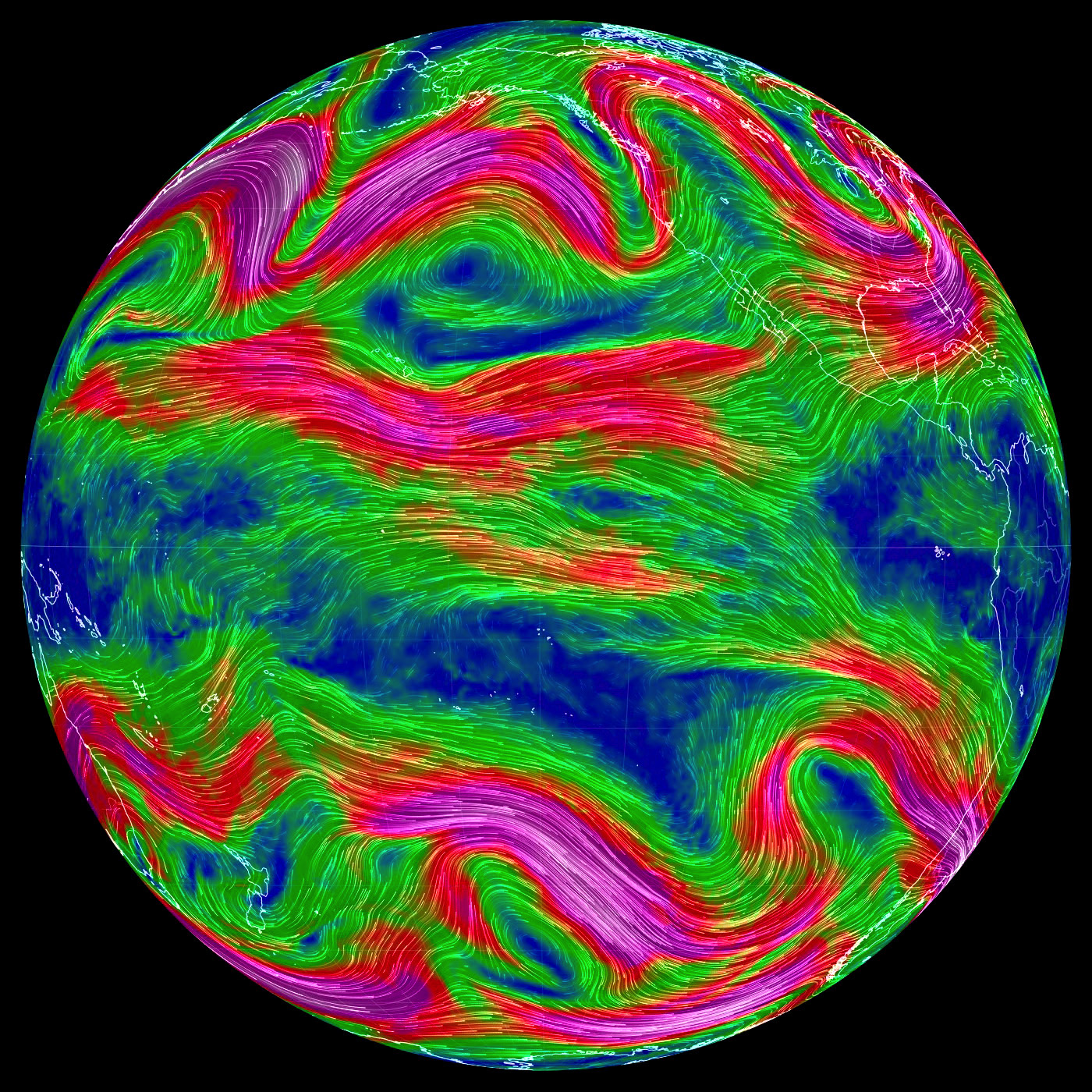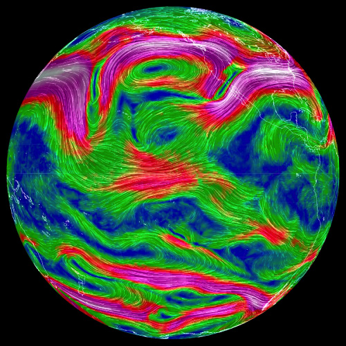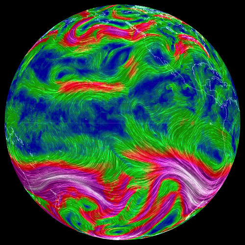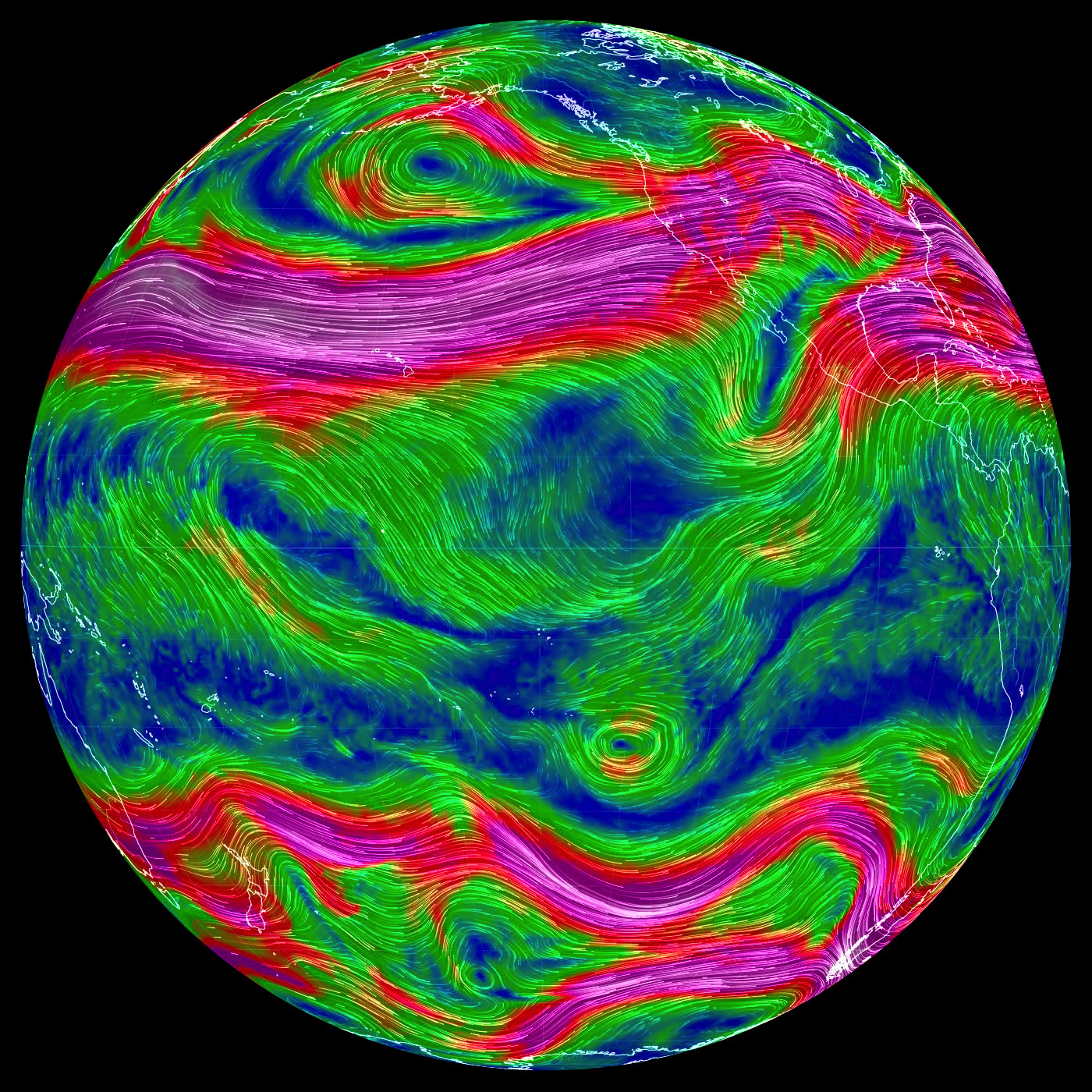 「赤道付近で上昇し緯度20–30度の低緯度地域で下降する気流」は,存在しない。 存在しないことは,実際に天気図にあたればわかる。 「熱帯収束帯」は,いまのような天気図をもてない時代の,机上の論 (妄想) である。 しかし気象学は,「熱帯収束帯」を固持し続けている。 それは,学者というのはだいたいが教条主義だからである。 天気図を見ず,教条のポンチ絵を信奉する。。 以下に,太平洋の 250hPa 面 (高度約11km) と 70hPa 面 (高度約 18.5km) の天気図を示す。 見ての通り,「赤道付近で上昇し緯度20–30度の低緯度地域で下降する気流」はもちろん,「定常的」と言えるような気流は存在しない。 |
