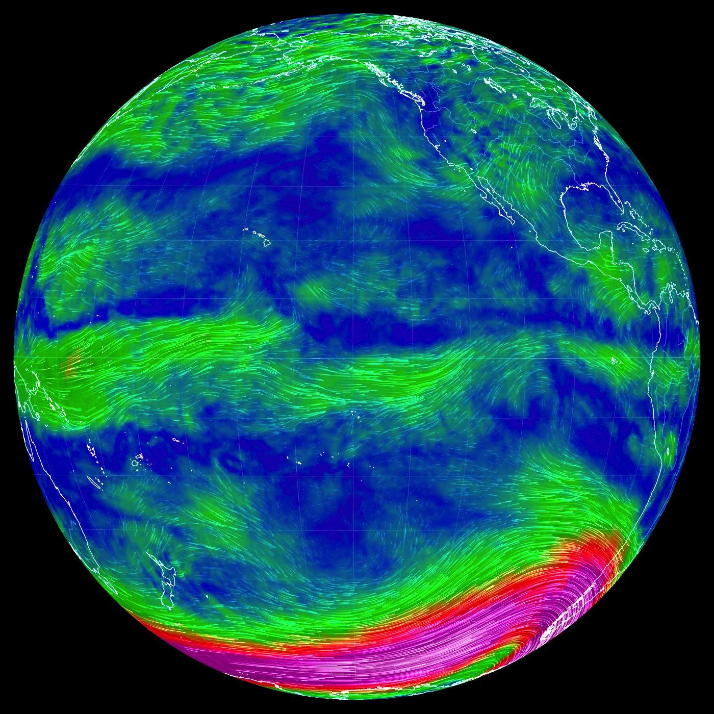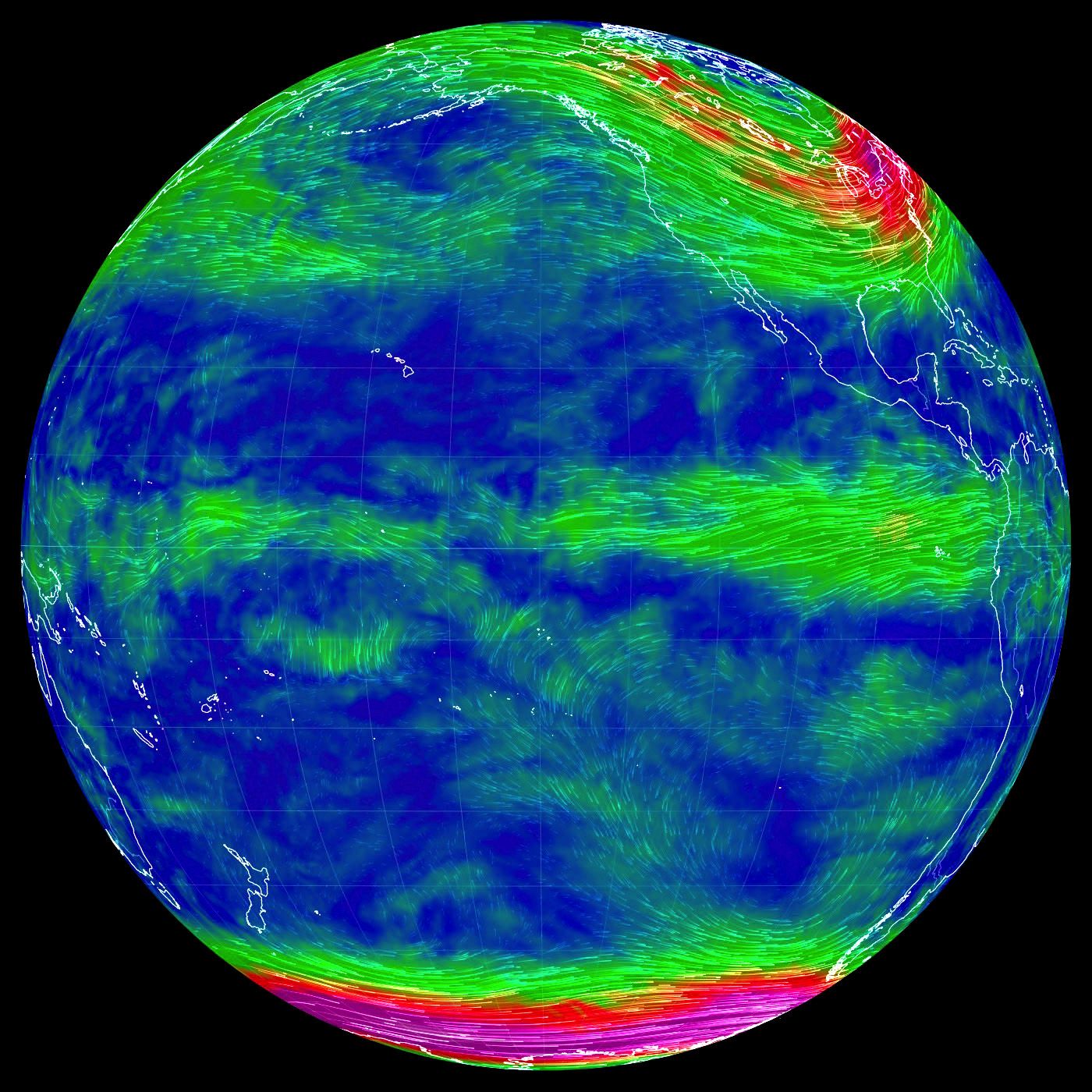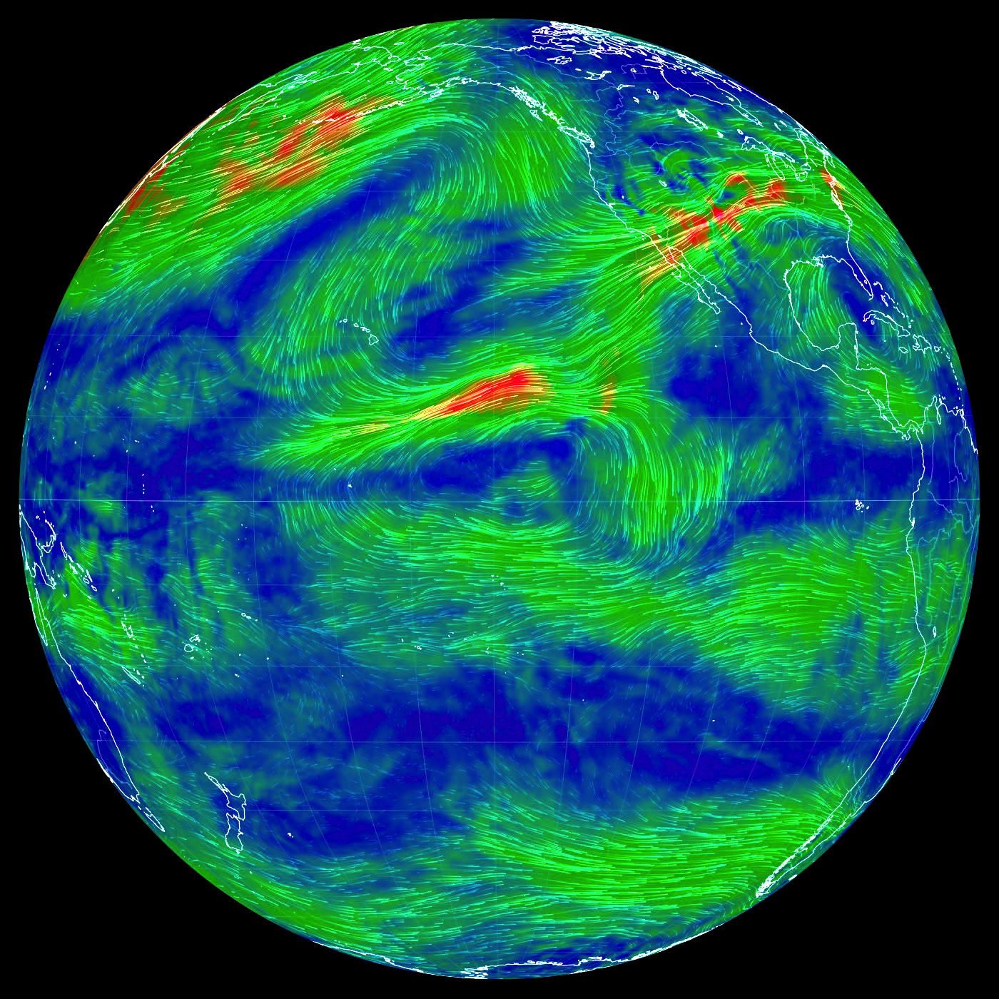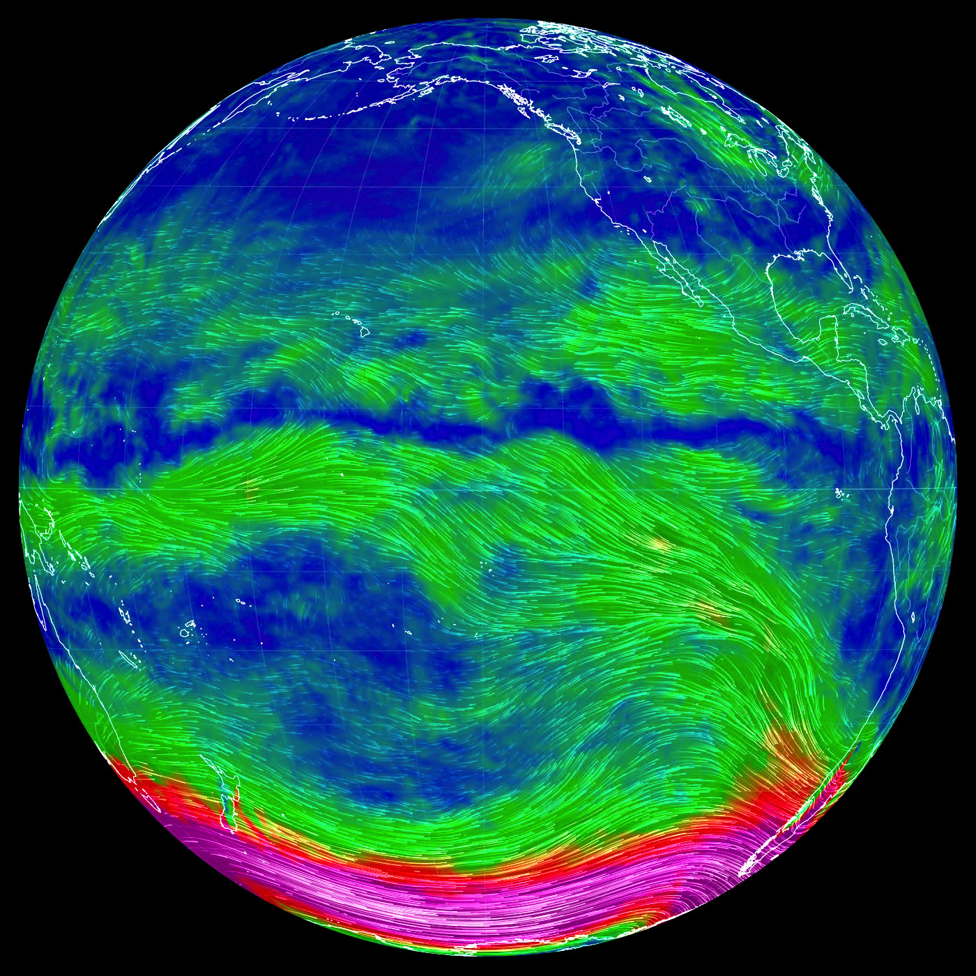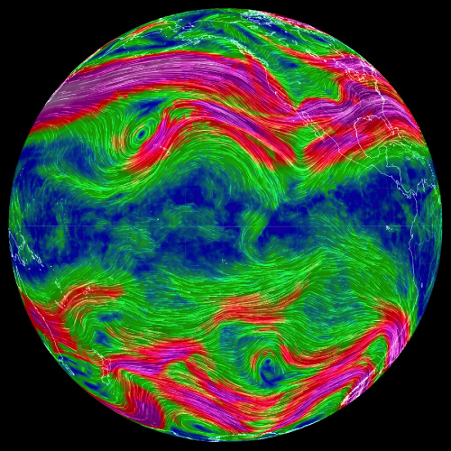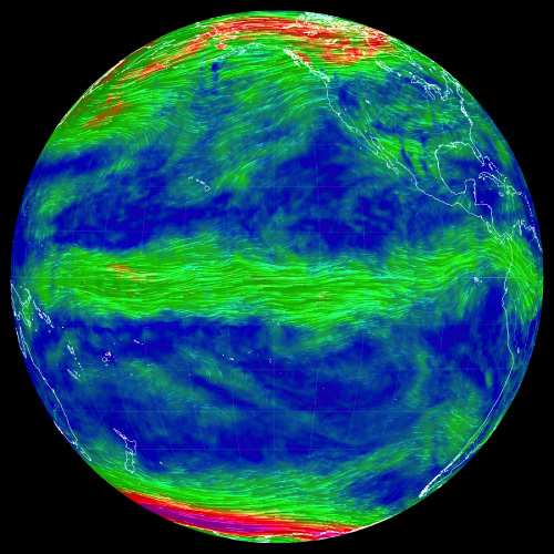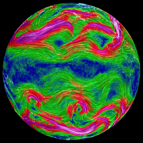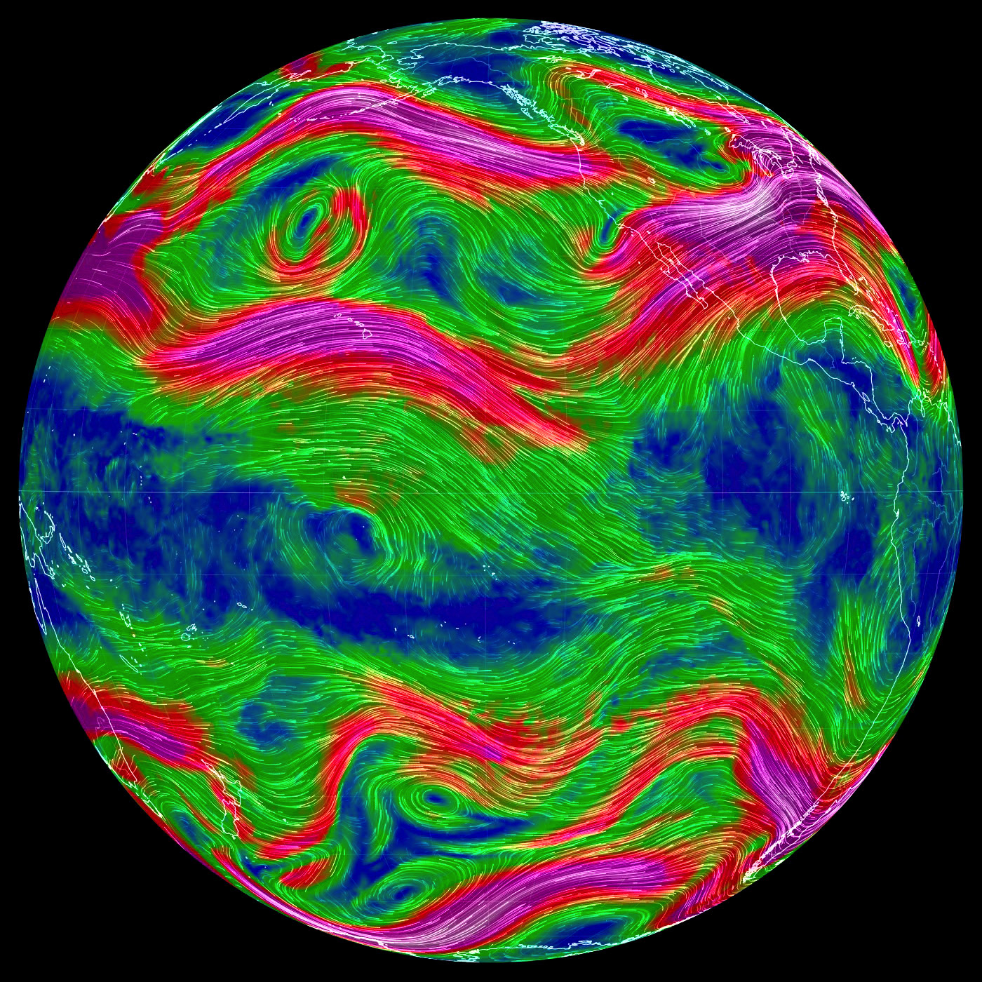 「赤道付近で上昇し緯度20–30度の低緯度地域で下降する気流」は,存在しない。 存在しないことは,実際に天気図にあたればわかる。 「熱帯収束帯」は,いまのような天気図をもてない時代の,机上の論 (妄想) である。 しかし気象学は,「熱帯収束帯」を固持し続けている。 それは,学者というのはだいたいが教条主義だからである。 天気図を見ず,教条のポンチ絵を信奉する。。 以下に,太平洋の 250hPa 面 (高度約11km) と 70hPa 面 (高度約 18.5km) の天気図を示す。 見ての通り,「赤道付近で上昇し緯度20–30度の低緯度地域で下降する気流」はもちろん,「定常的」と言えるような気流は存在しない。 |