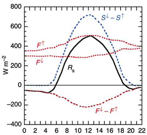 | S | : | the upward flux of solar radiation at the surface |