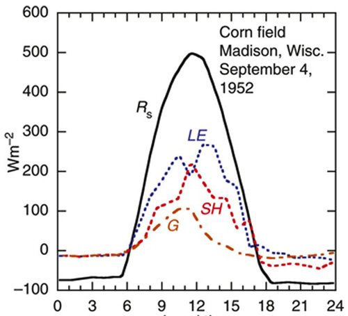 | Rs | : | the net radiative flux of energy into the surface |