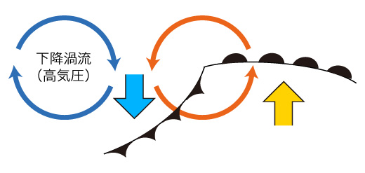 この位相の基本は,「上昇渦気流 (低気圧) は,周りの大気を吸い寄せる」である。