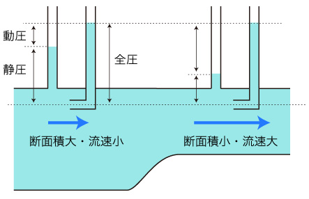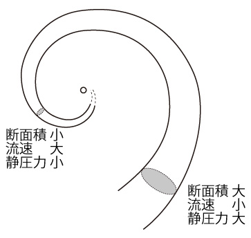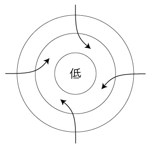 風が等圧線と平行に流れる理由は,おおよそ以下のようになる。 ○ 低気圧の場合 渦の中の気圧は,その収束点の気圧へと段々に降下するふうになる。 この気圧分布の説明は,流管に対する「ベルヌーイの定理」である: