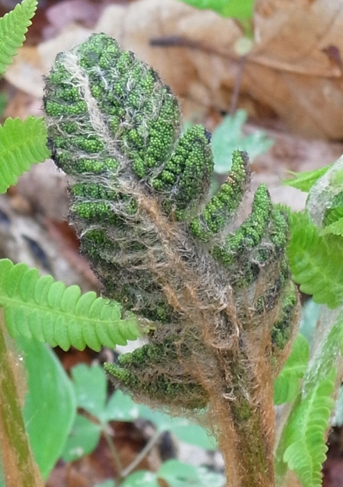 ヤマドリゼンマイは,一つの株に栄養葉(裸葉) と胞子葉(実葉) をつける (「二形性」) タイプのシダ