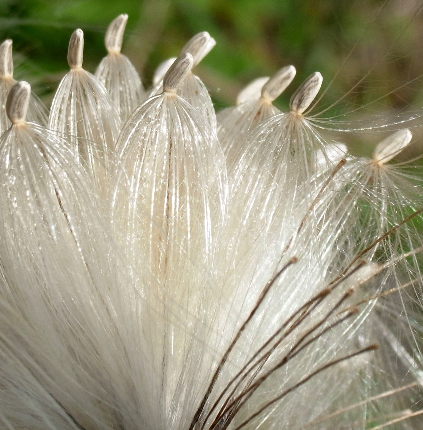 種子が花床からはがれ,風で飛び立つ