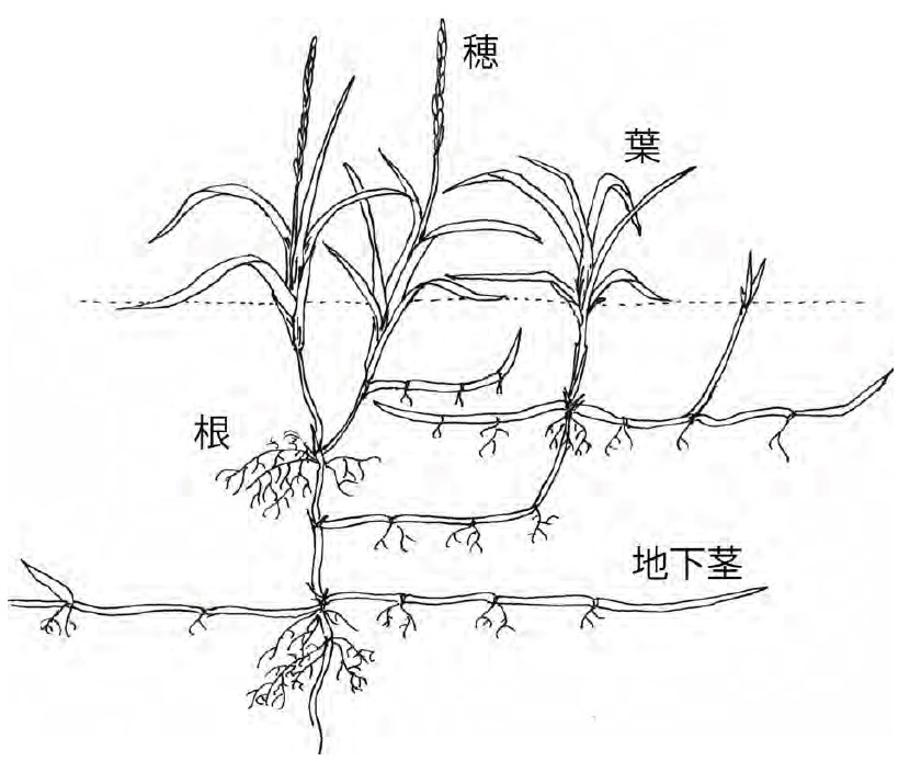 • 地下茎を長く伸ばす。
