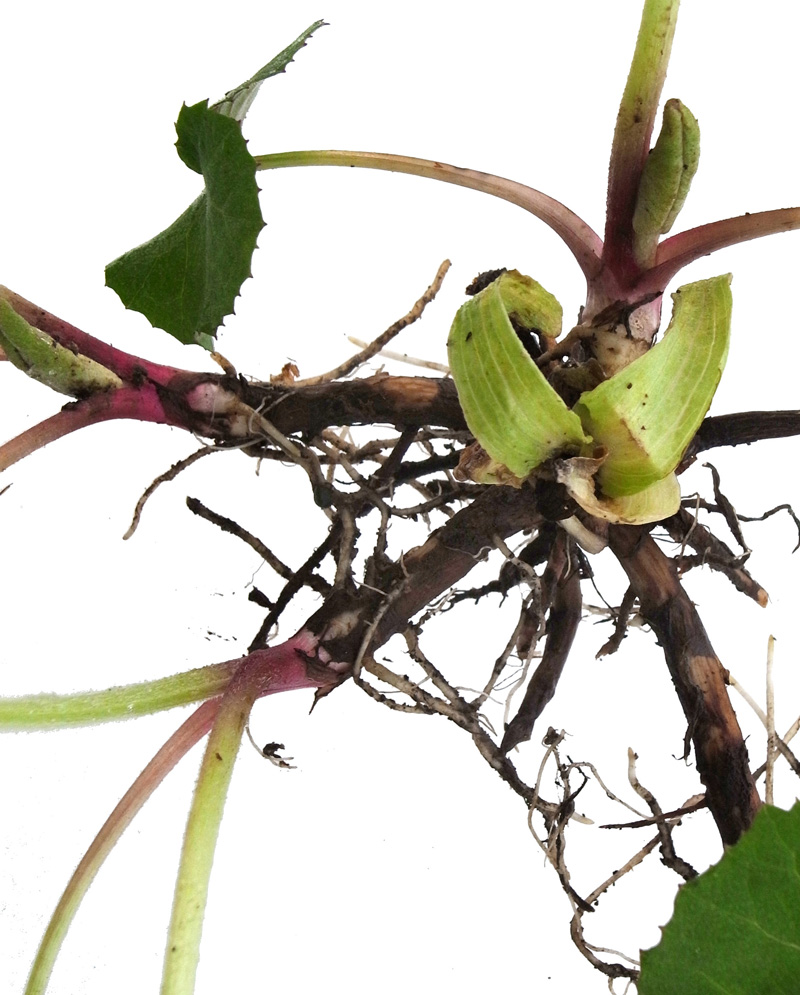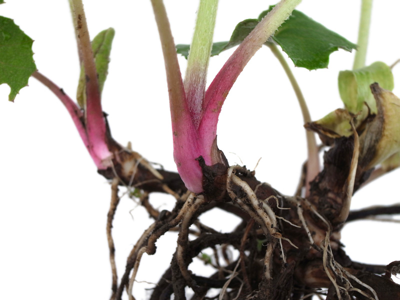 上方から見た地下茎の分かれ (見やすさのため根をカット):