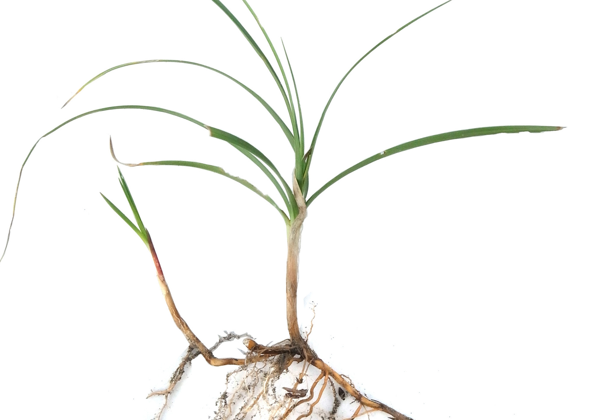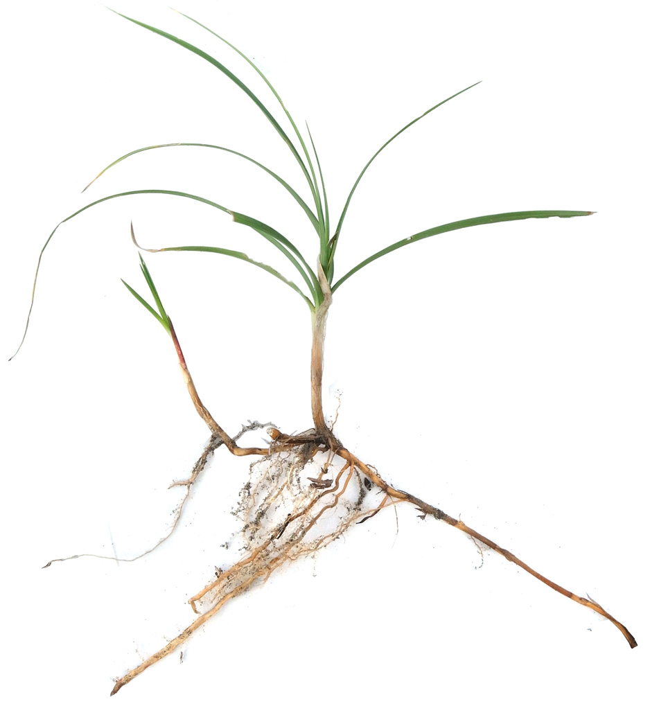 地下には横に走る長い根茎があり、地上茎は間を置いて出る