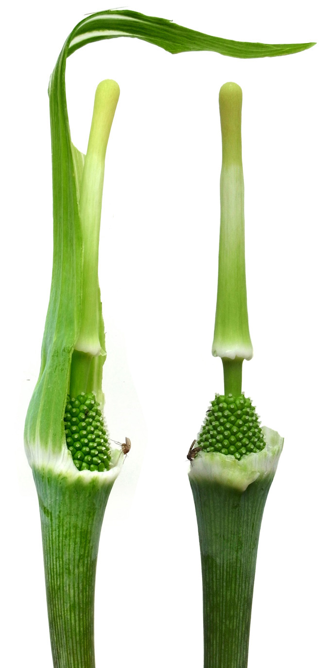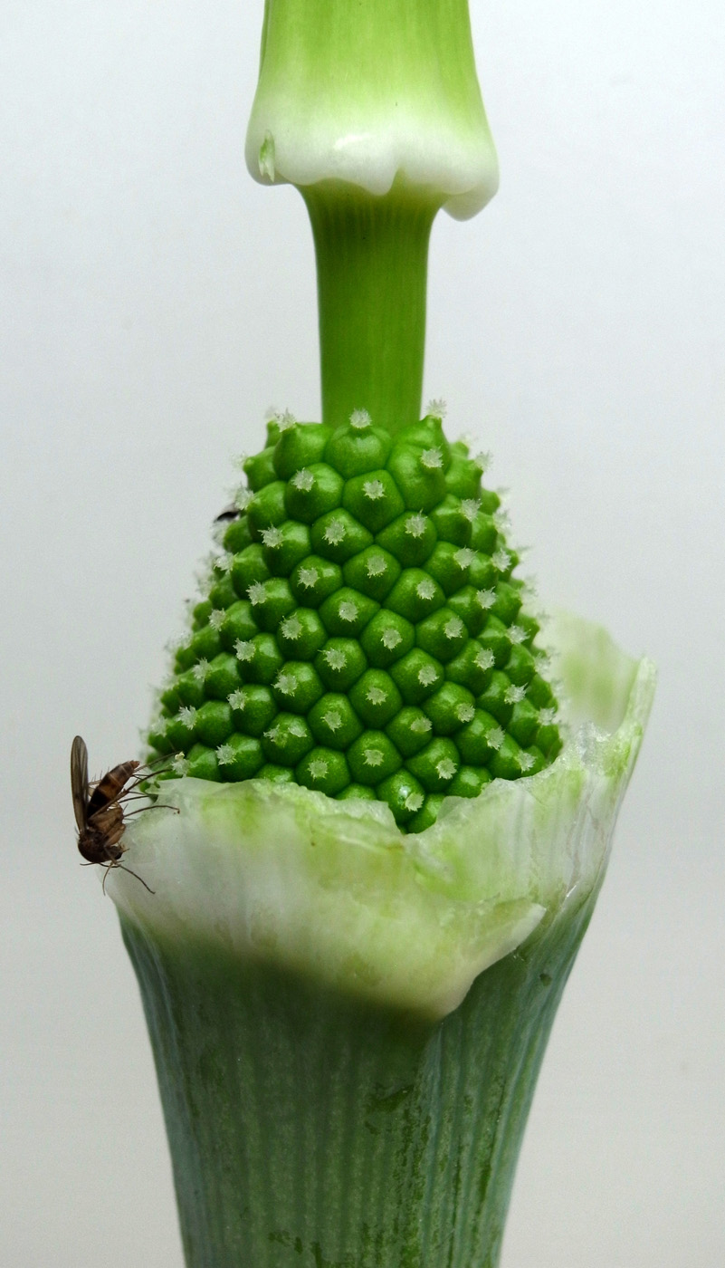 苞 (「仏炎苞」) を剥がして中を見る──雌花