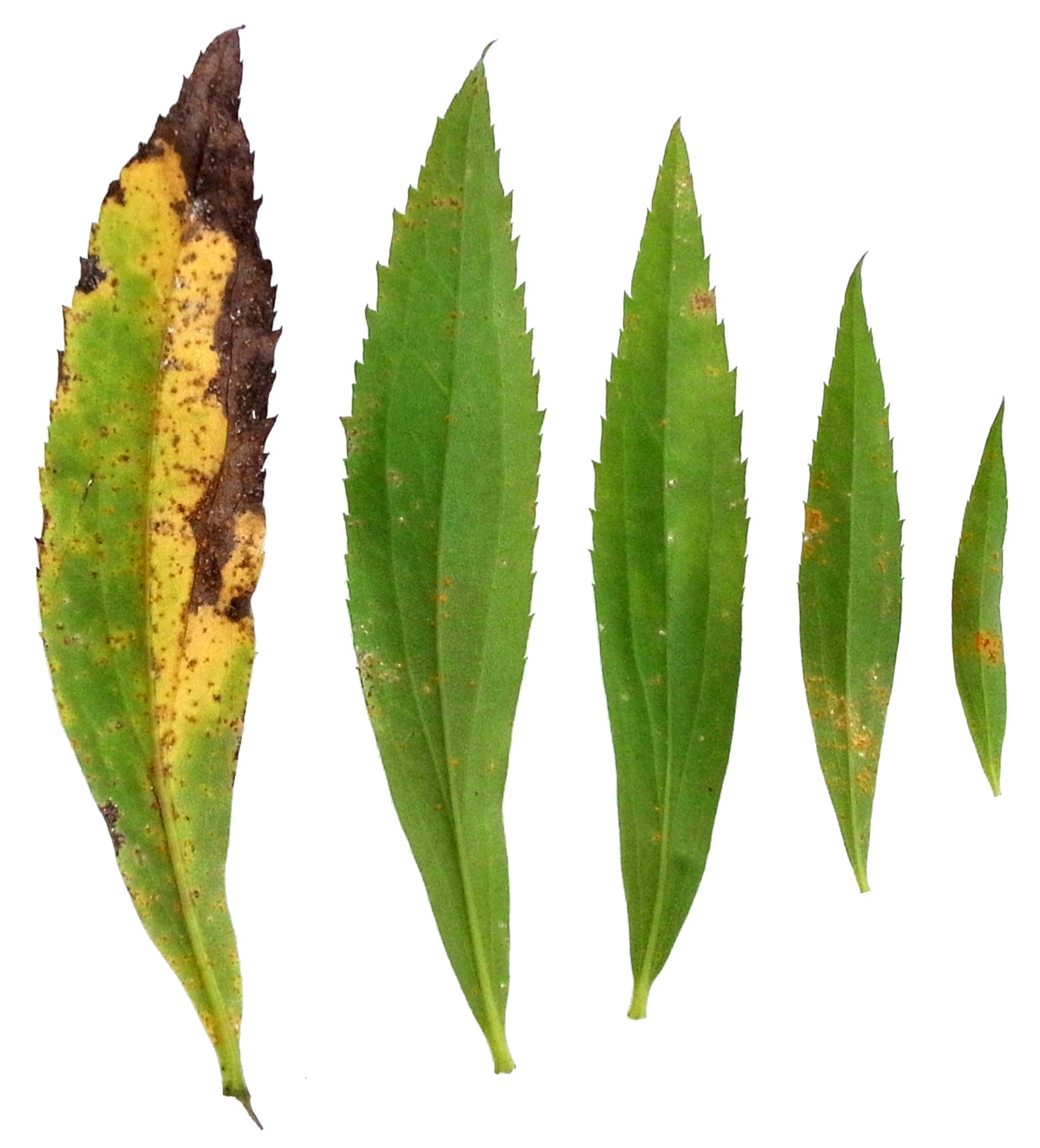 葉の形・大きさの変化 ── 下方から上方へ (画像左から右へ)