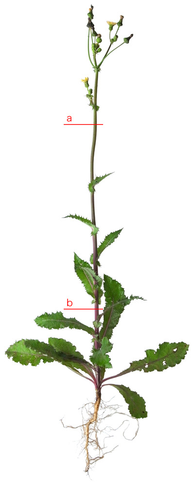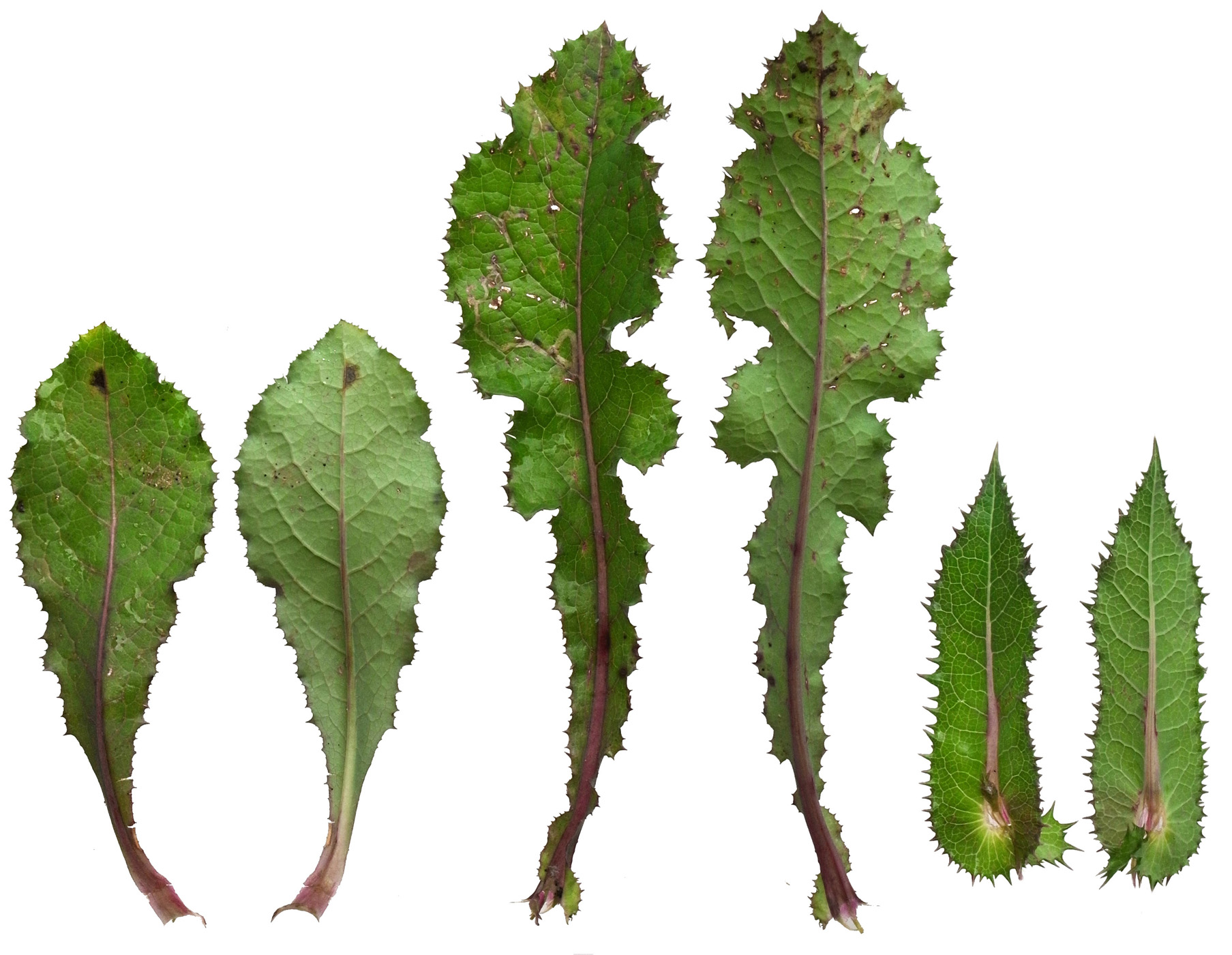 根元近くの葉から上方の葉へ (画像の左から右へ)