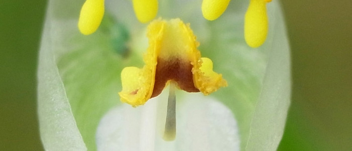 昼が近づくとしぼむ。このとき,雄しべと雌しべを巻き自家受粉 (「同花受粉」) する。