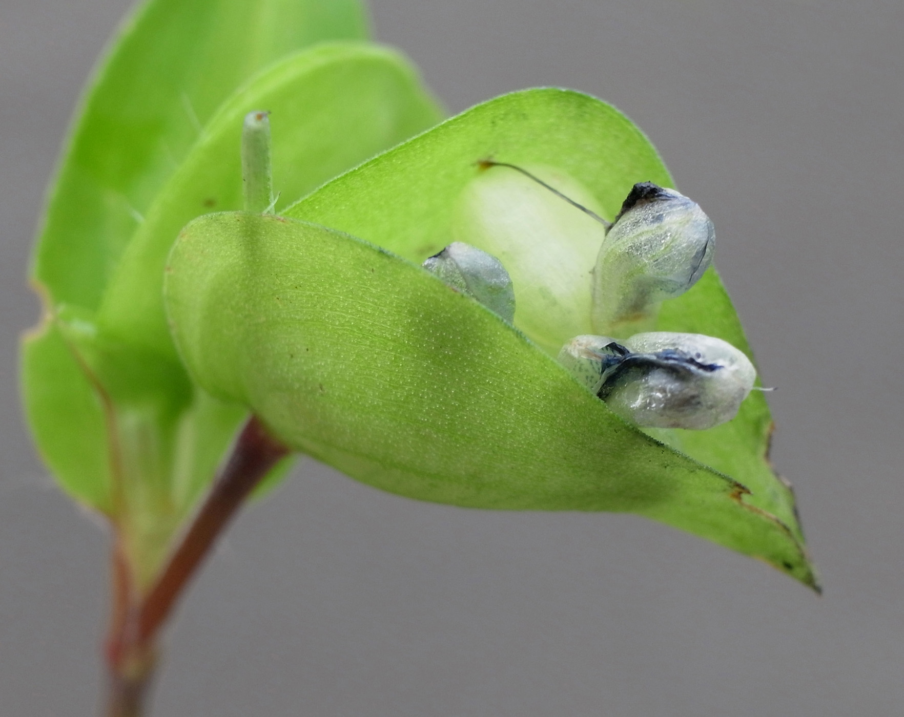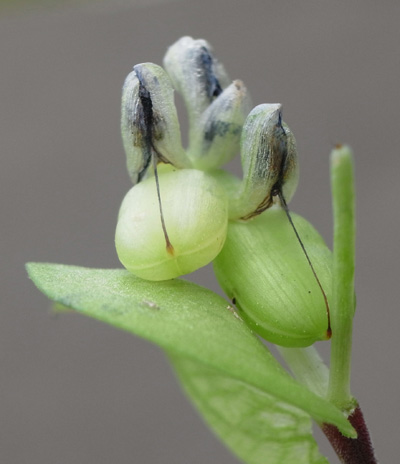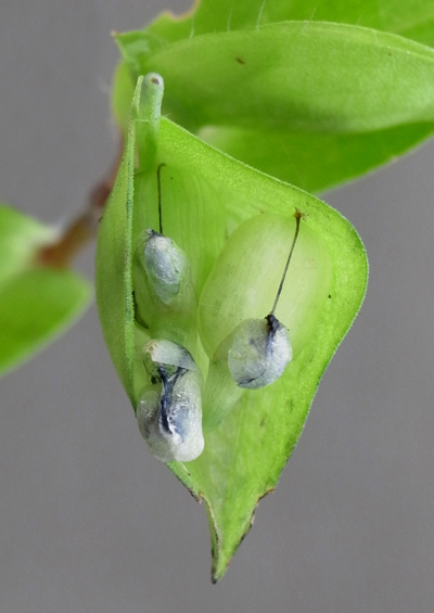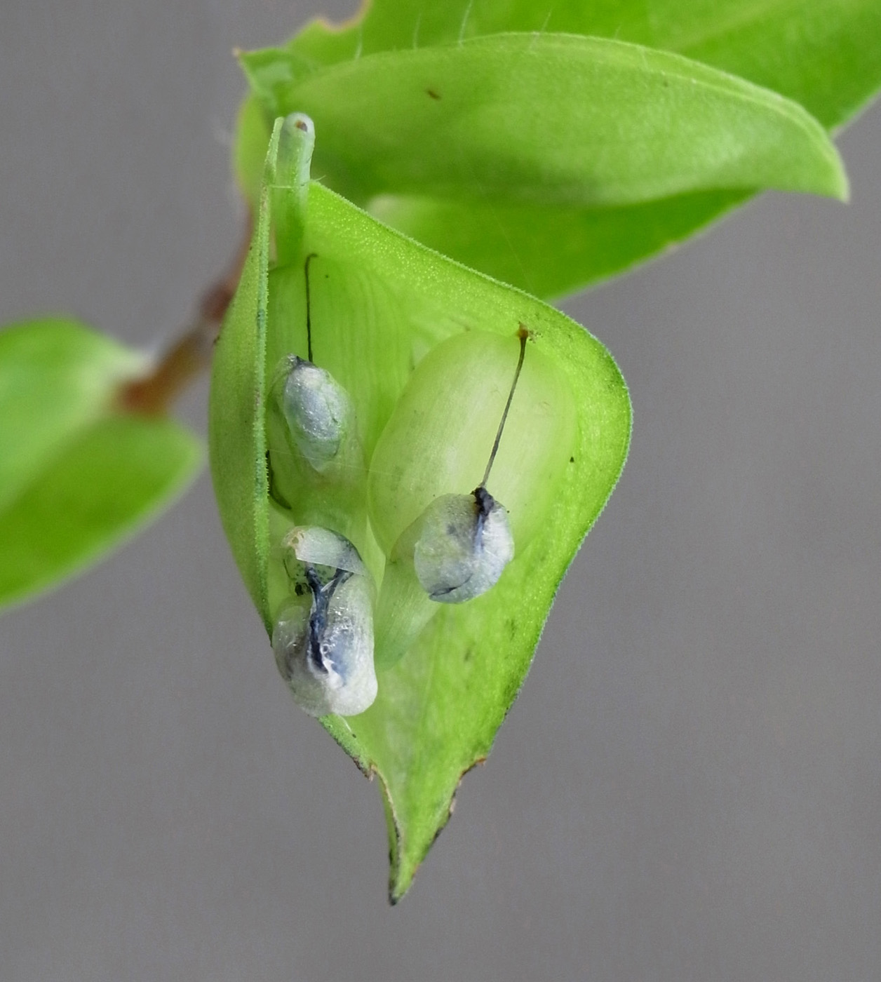 果実のへた (花の残骸) から,もと雄しべ・雌しべだった糸がはみ出ている