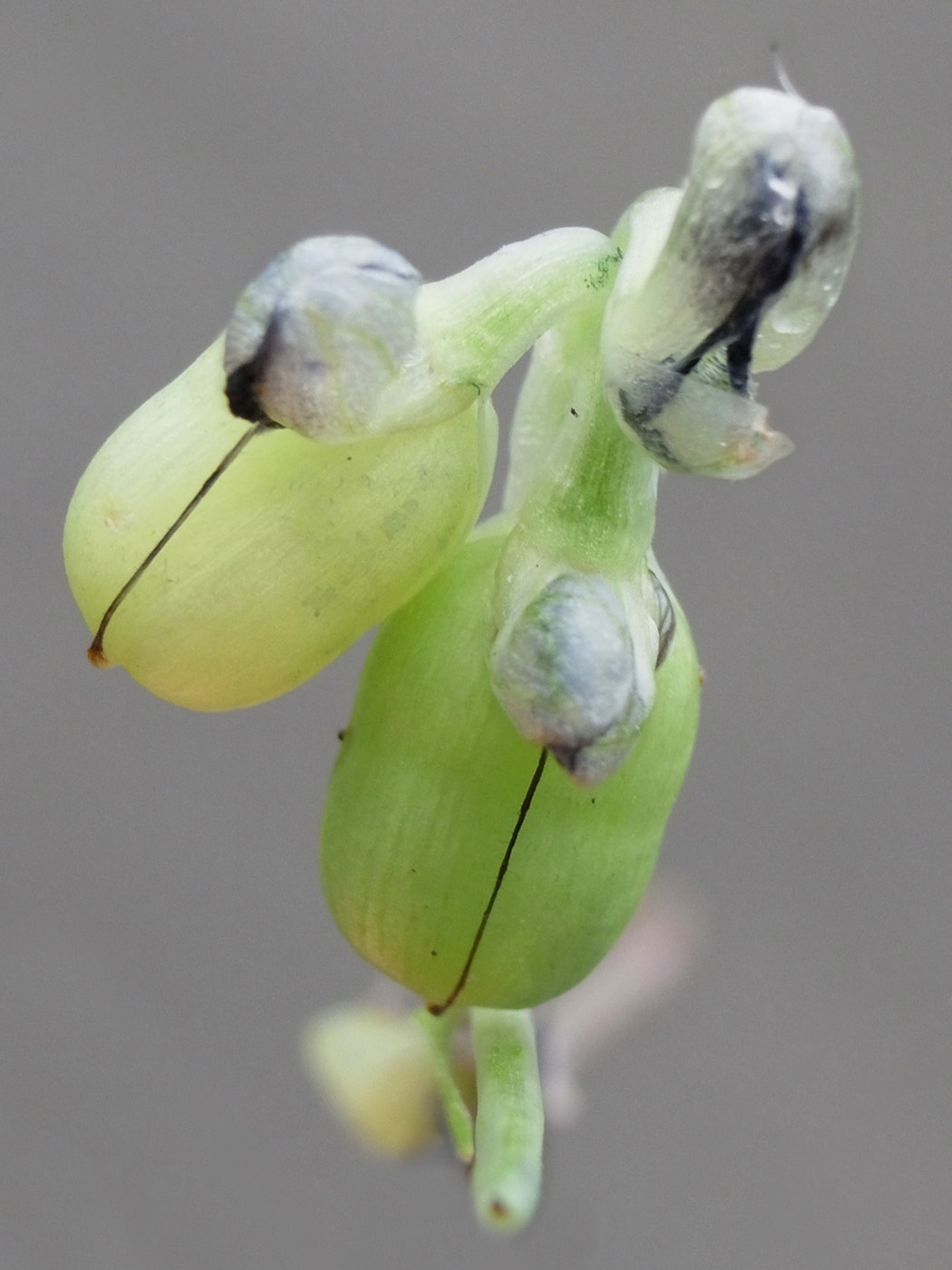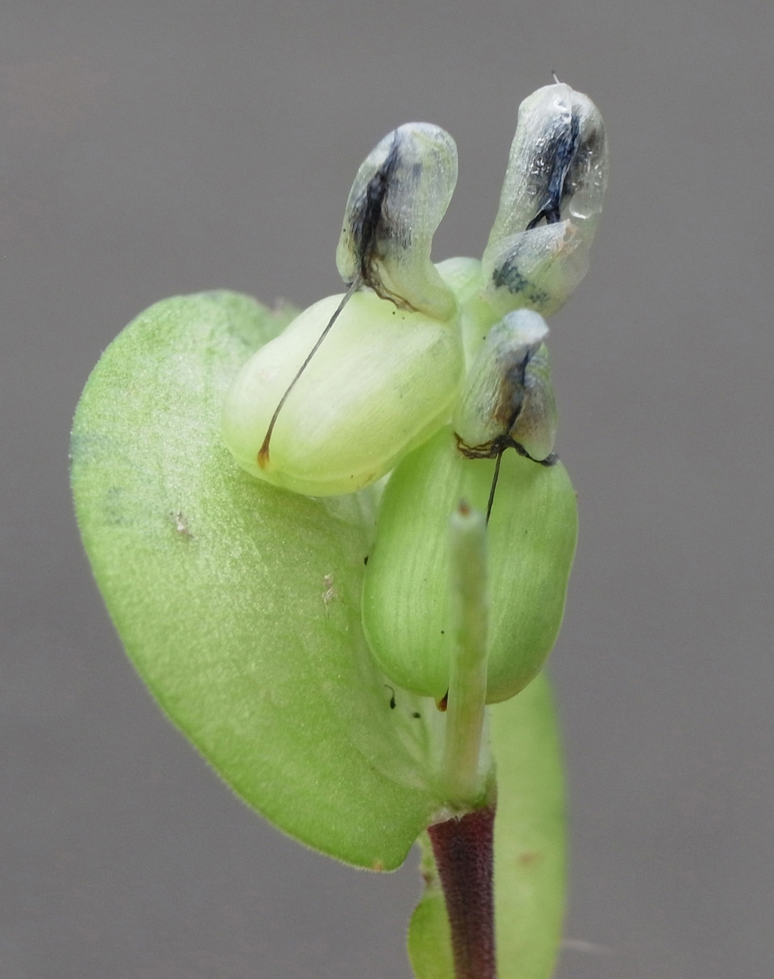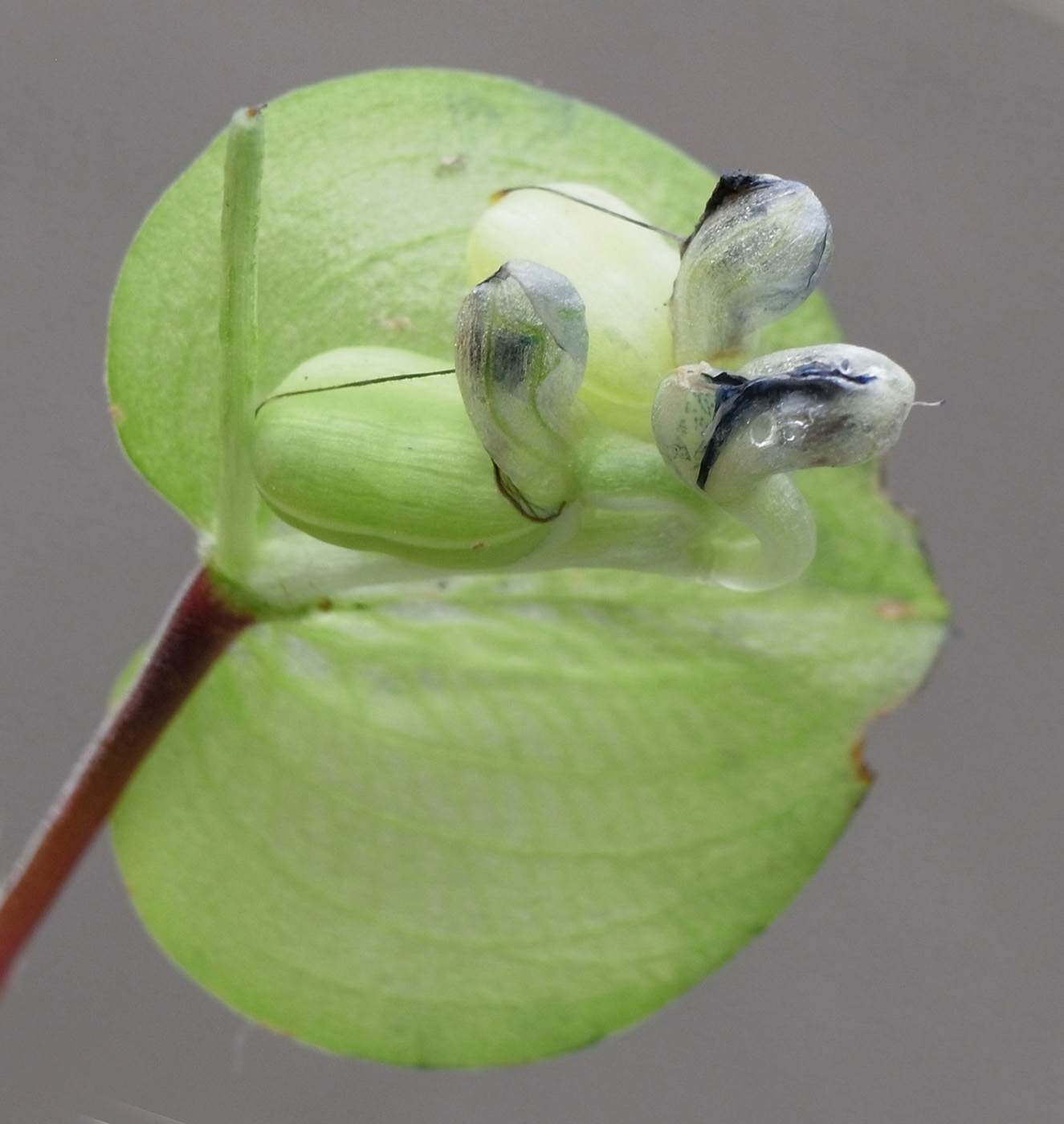 果実のへた (花の残骸) から,もと雄しべ・雌しべだった糸がはみ出ている