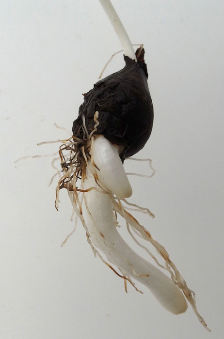 花が咲けば、親の球根は、分裂して、子どもになります。