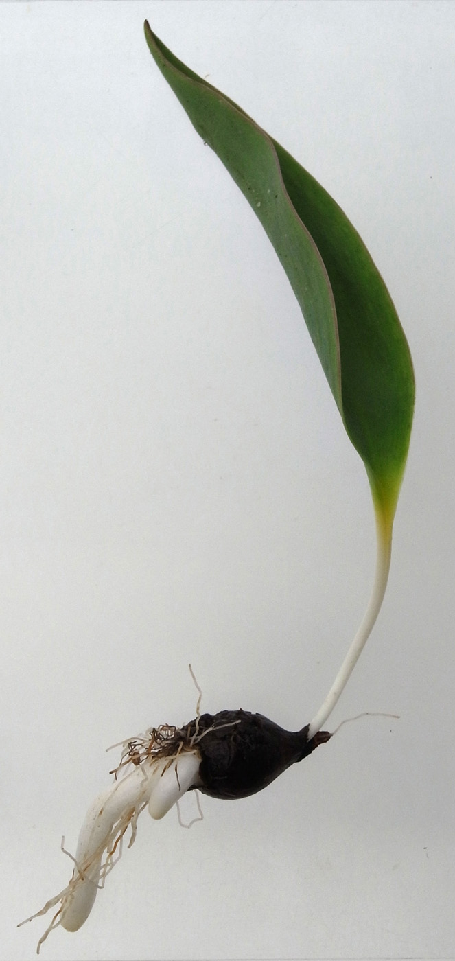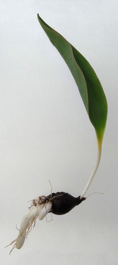 チュウリップの葉が一枚ということは、親が分球して、子どもになったということです。