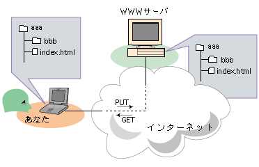 ホームページは,WWWサーバー機にページソースファイルを転送することによって,実現されます。