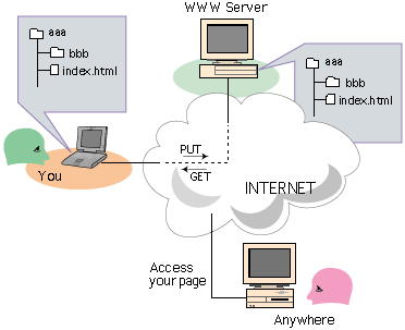 Illust of up/down-load ("PUT/GET") of files by means of ftp: