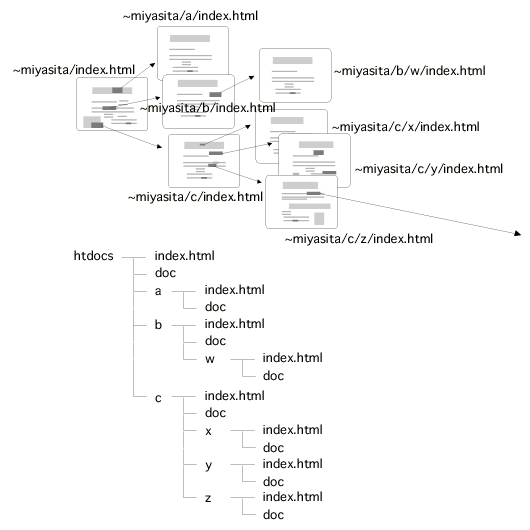したがって,各ディレクトリの中身は,index.html のほかはすべてサブ・ディレクトリとなる。