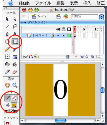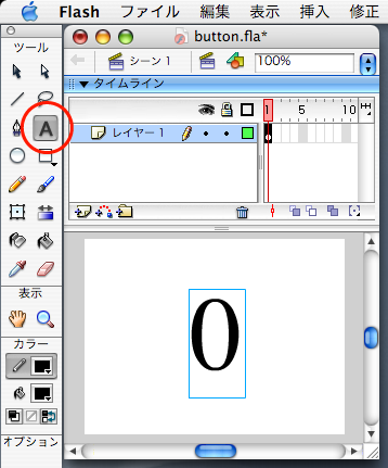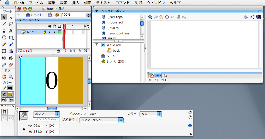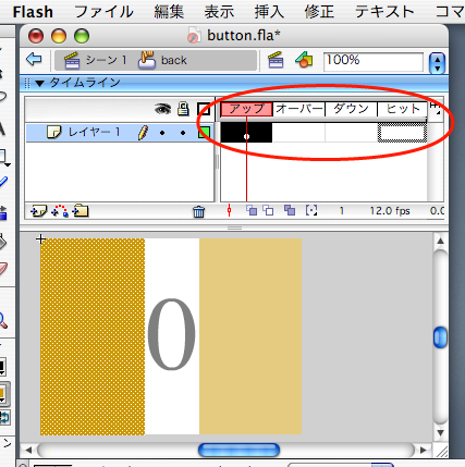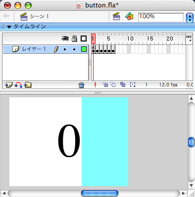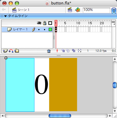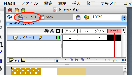 「シーン1」をクリックして,ボタンの編集から抜ける。