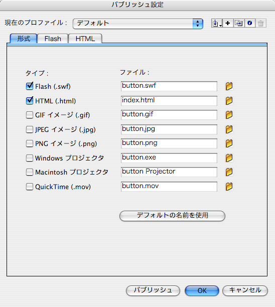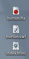 ムービーファイルと html ファイルが,button.fla のある場所に並んで書き出される。
