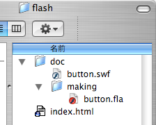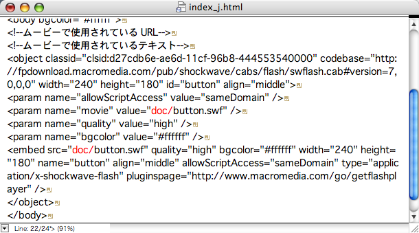 これに対応して,index.html の中の「button.swf」への経路 (path) を修正する。──"button.swf" を "doc/button.swf" に変更。